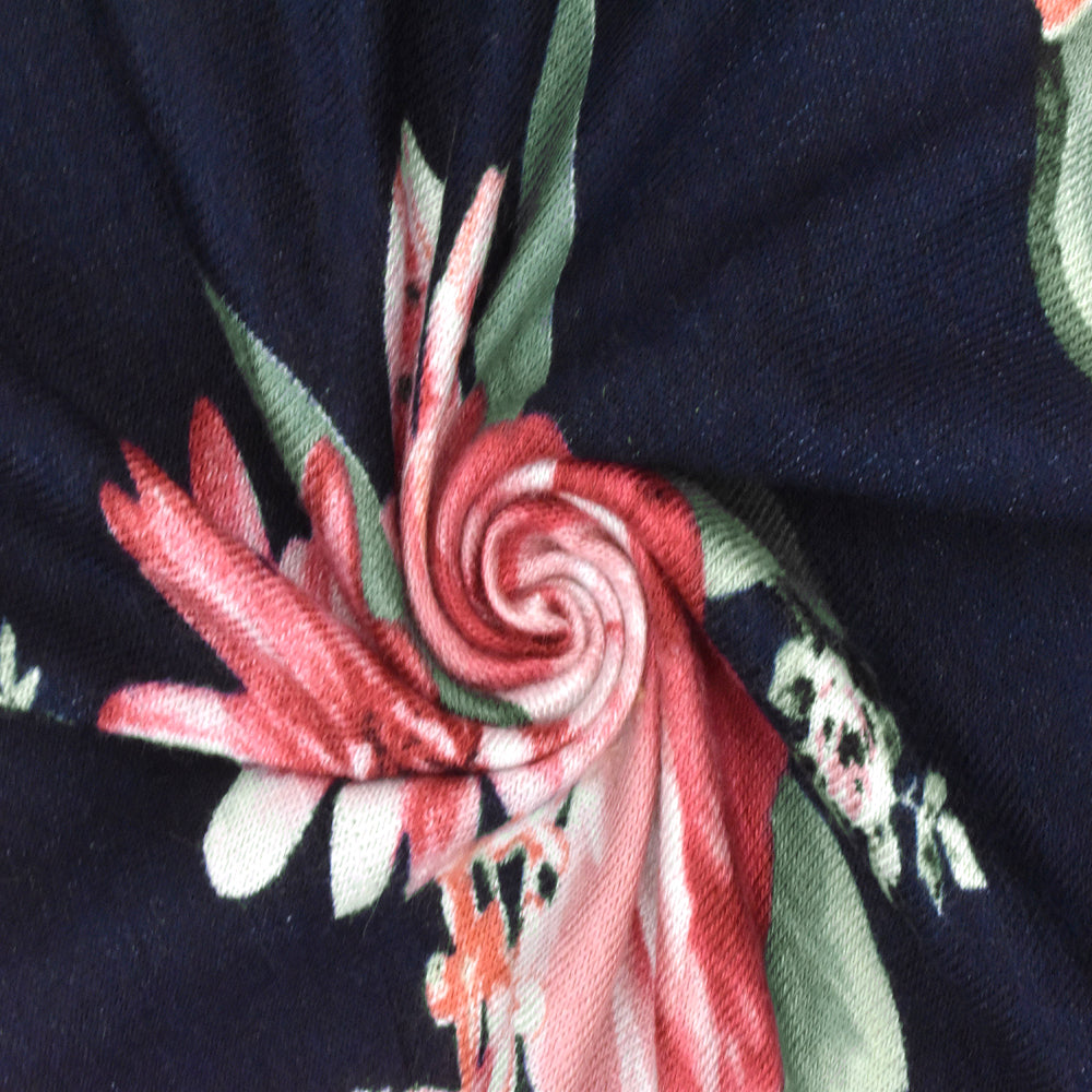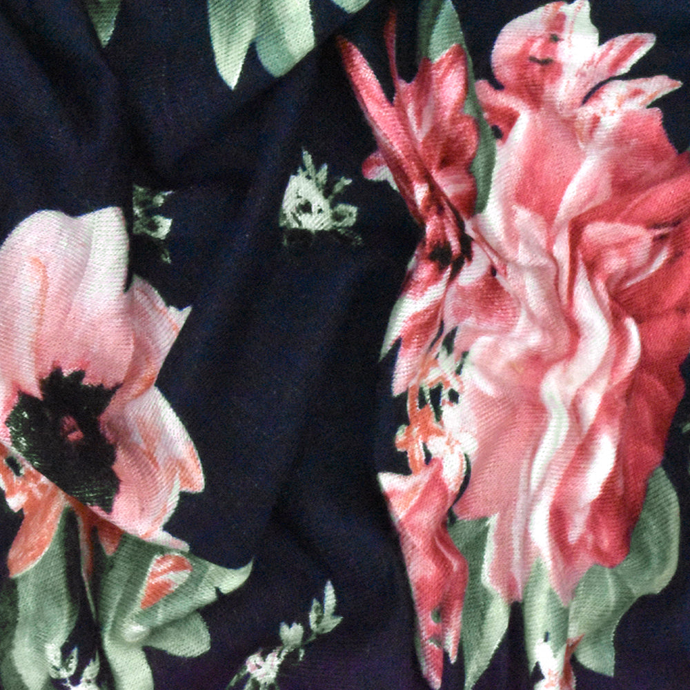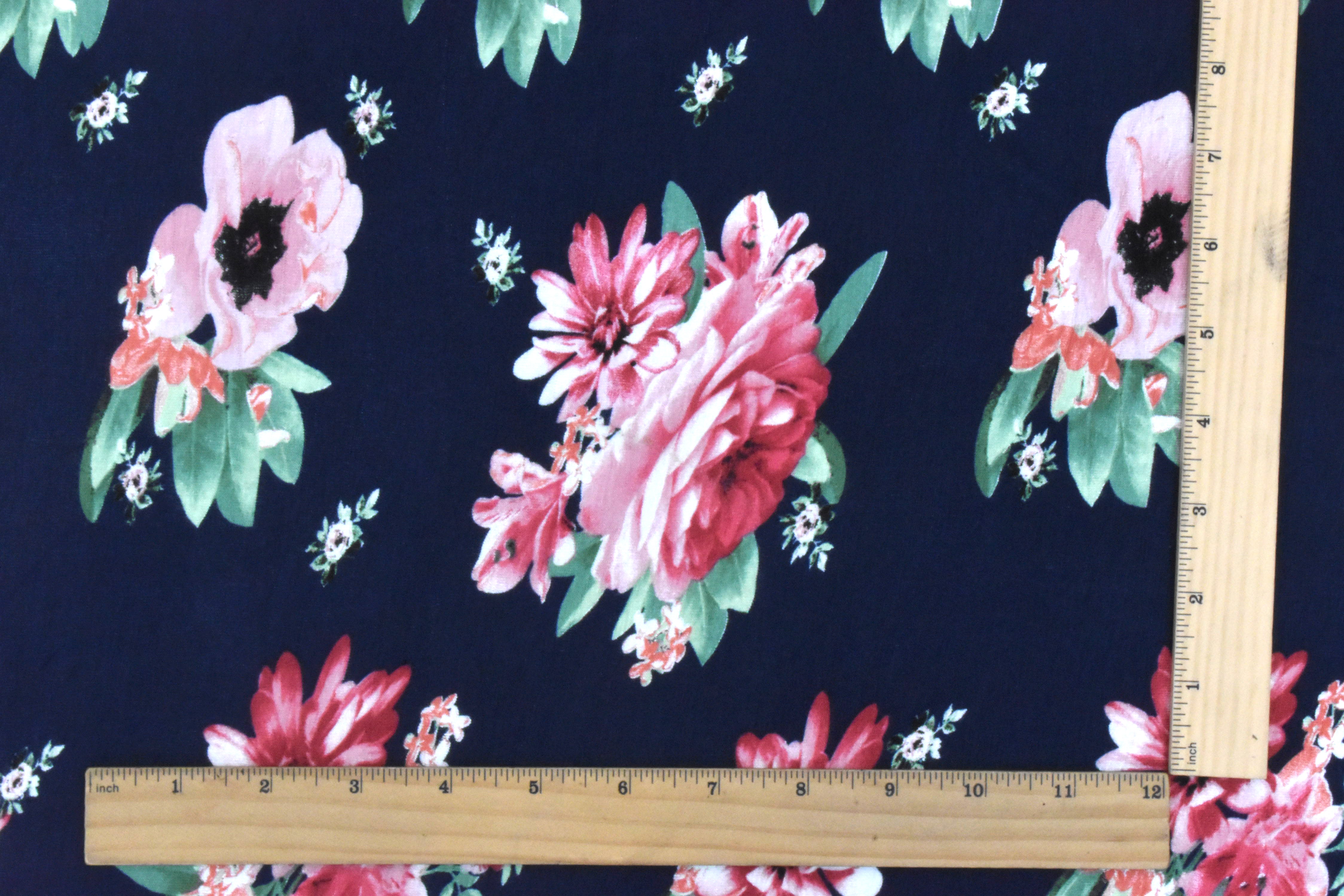 Deep Navy-Pink-Multi Floral Printed Rayon Stretch Jersey Knit Fabric