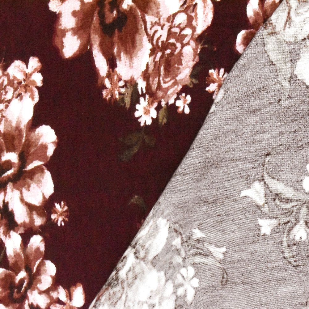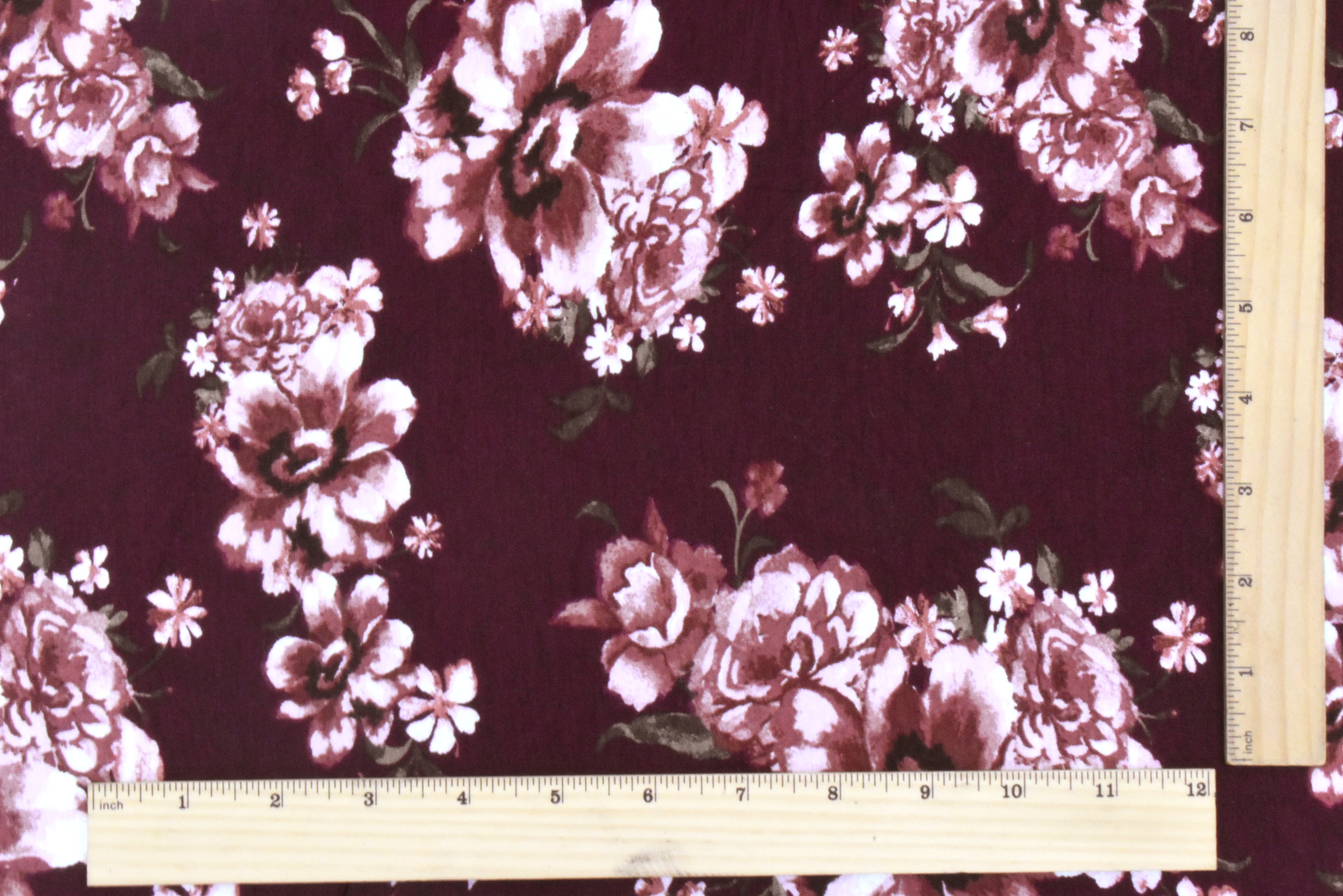 Maroon Red-Brown-Multi Floral Printed Rayon Stretch Jersey Knit Fabric