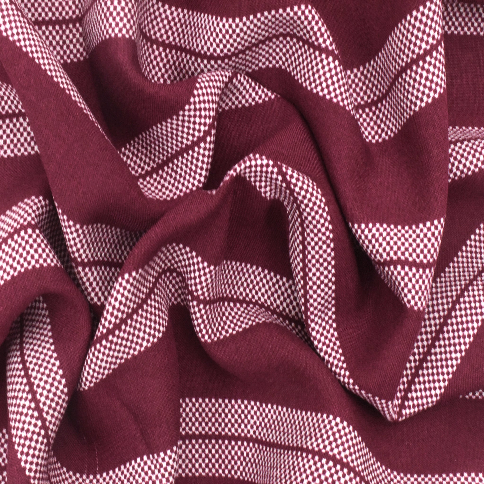 Raspberry Red-White Stripe Printed Challis Woven Fabric
