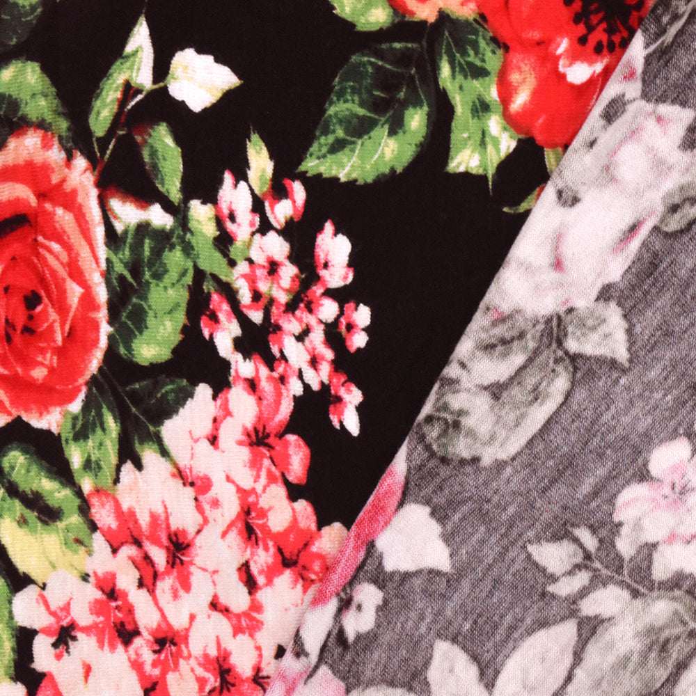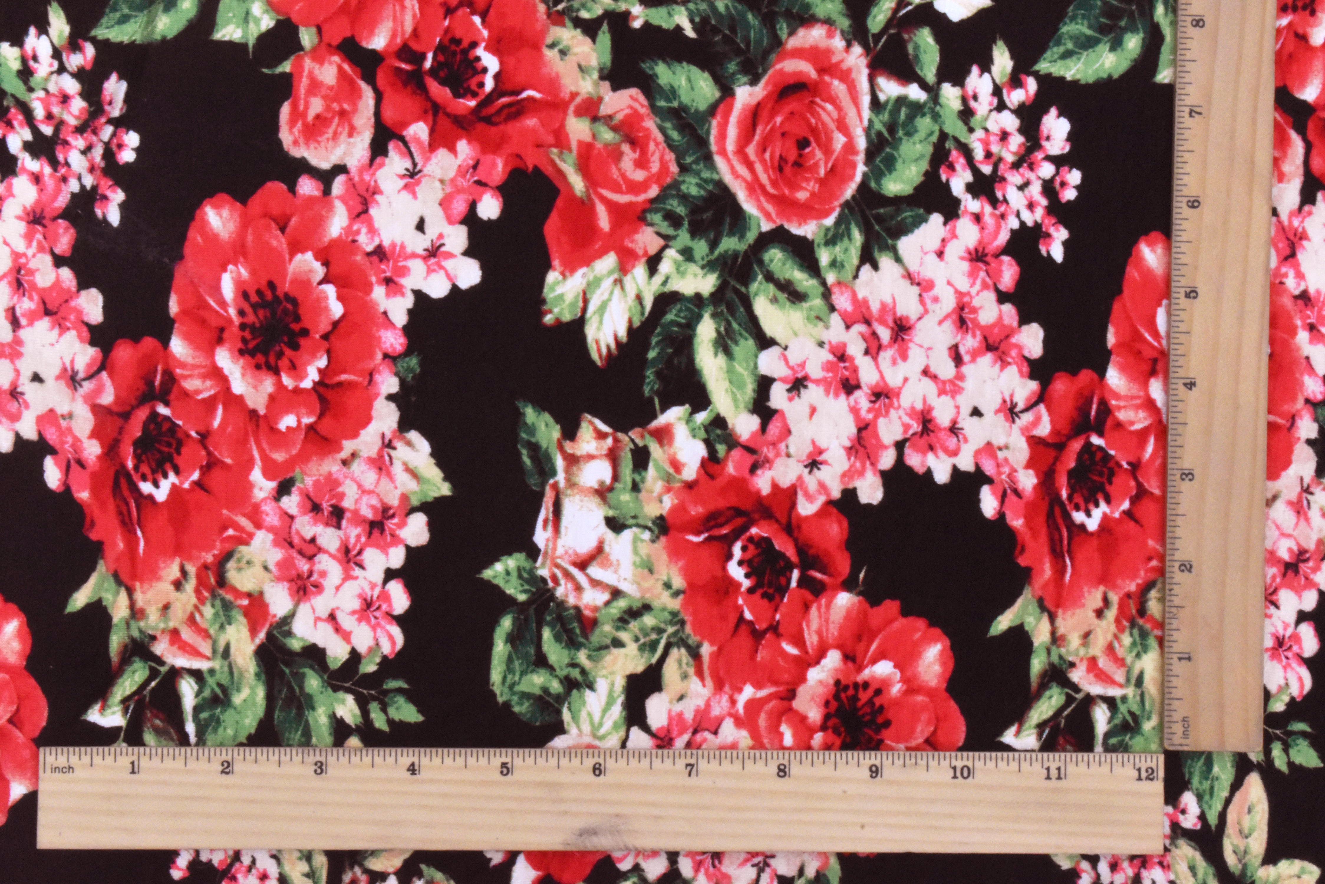 Red-Green-Multi Floral Printed Rayon Stretch Jersey Knit Fabric