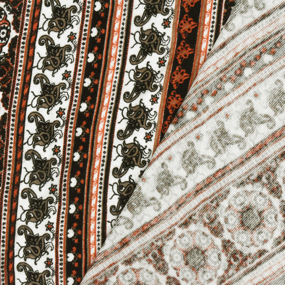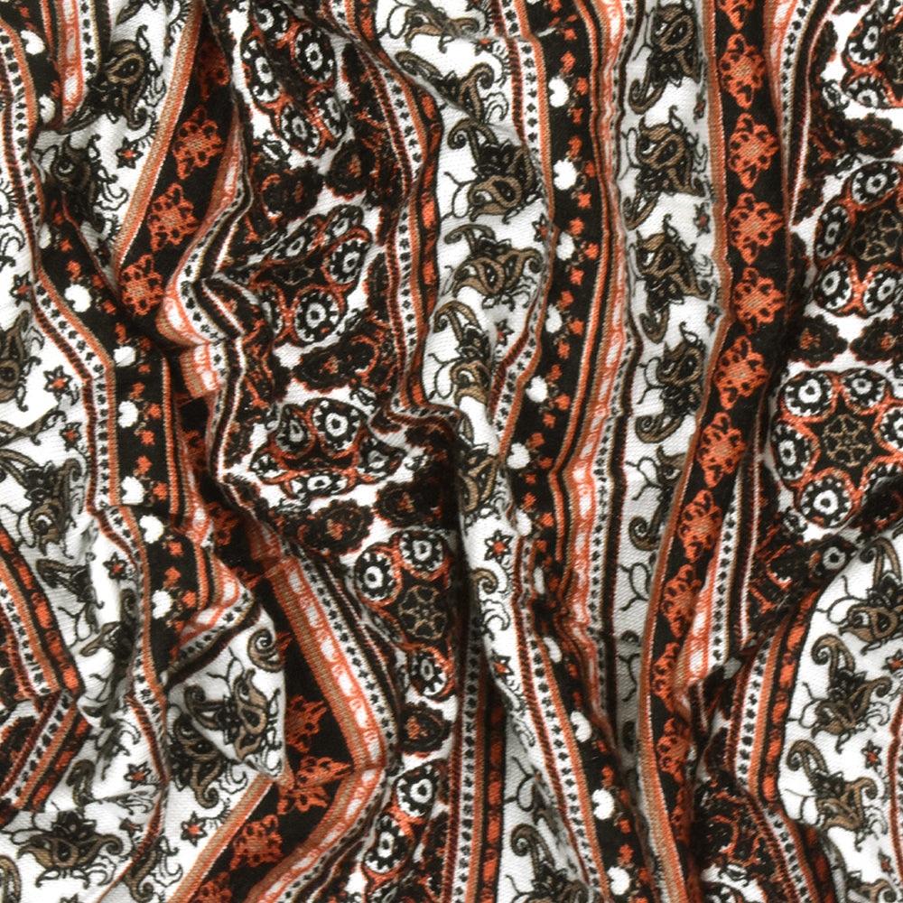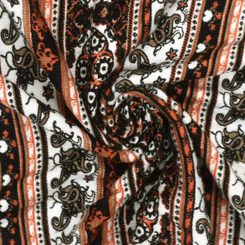White-Orange-Multi Moroccan Stripe Printed Rayon Stretch Jersey Knit Fabric