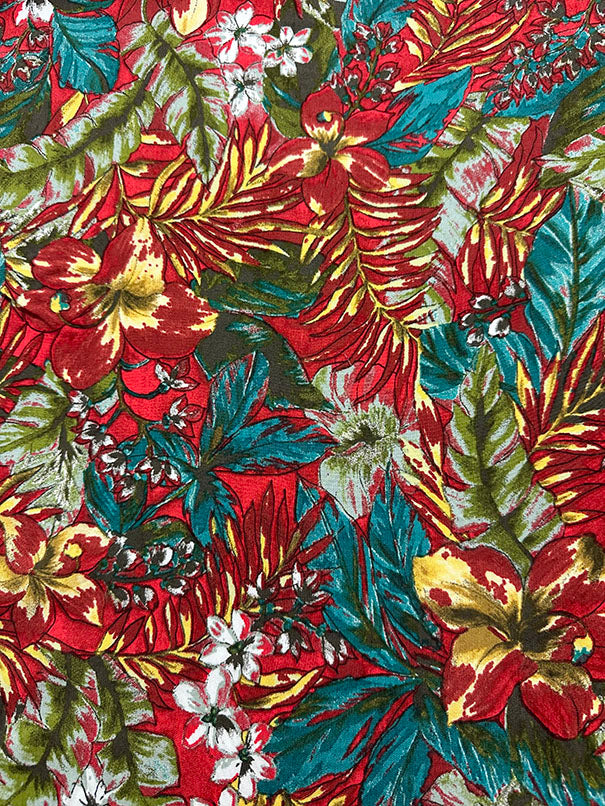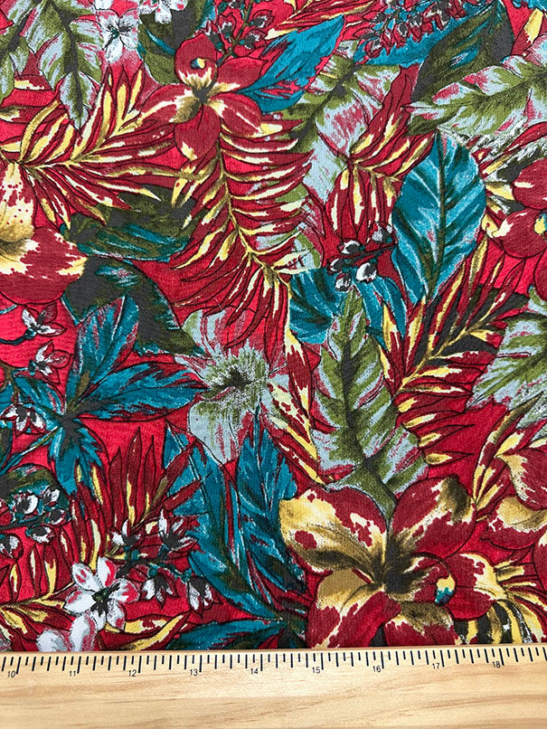 2 1/2 YD PC-Red Multi Palm Print Rayon Challis Fabric