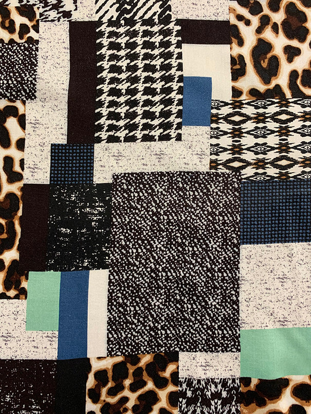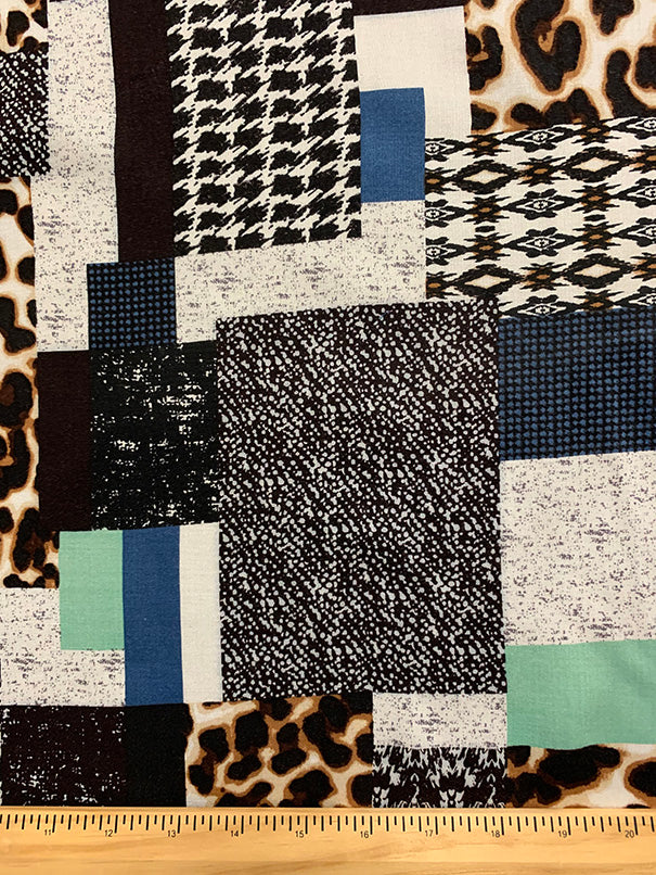Aqua and Blue Patchwork Print Rayon Challis Fabric