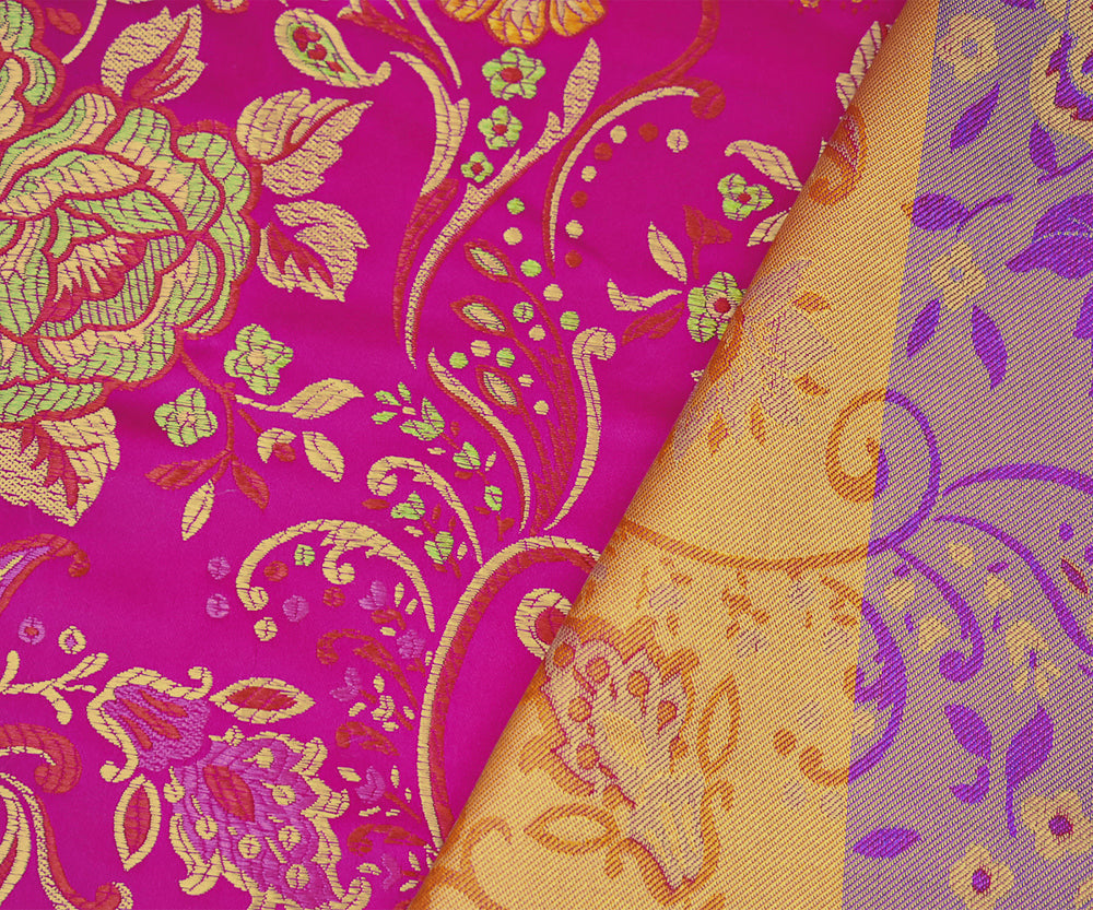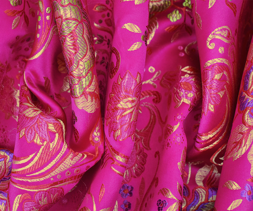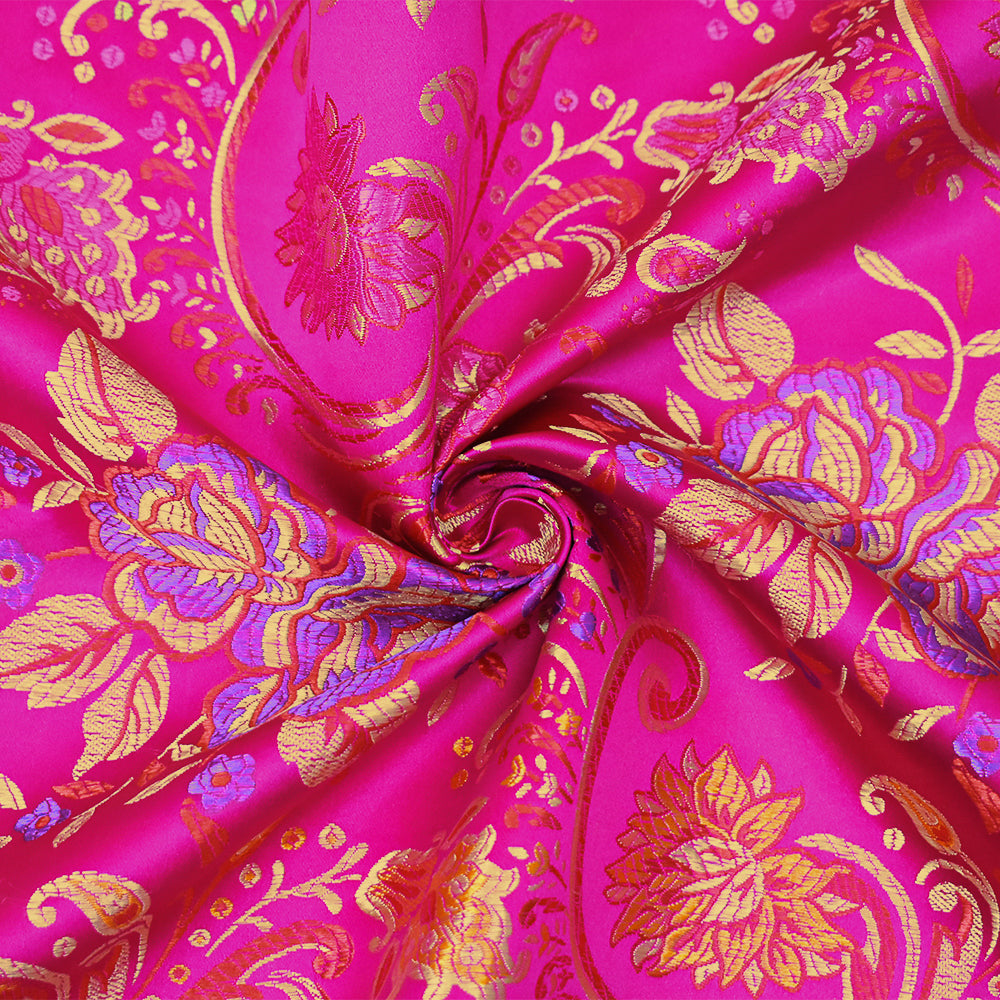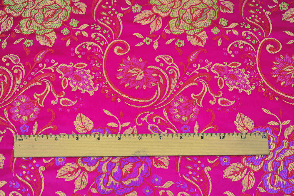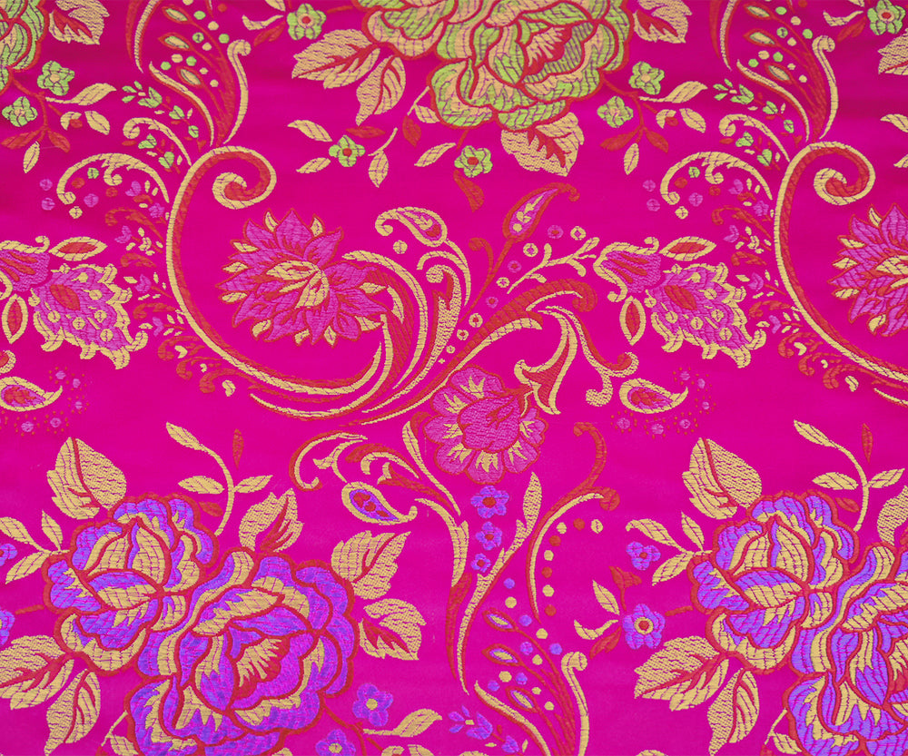 Deep Fuchsia-Yellow-Multi Polyester Floral Chinese Brocade Woven Fabric