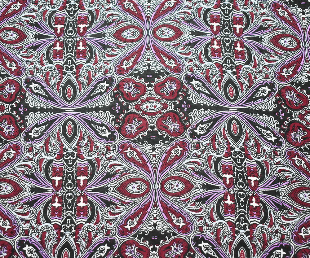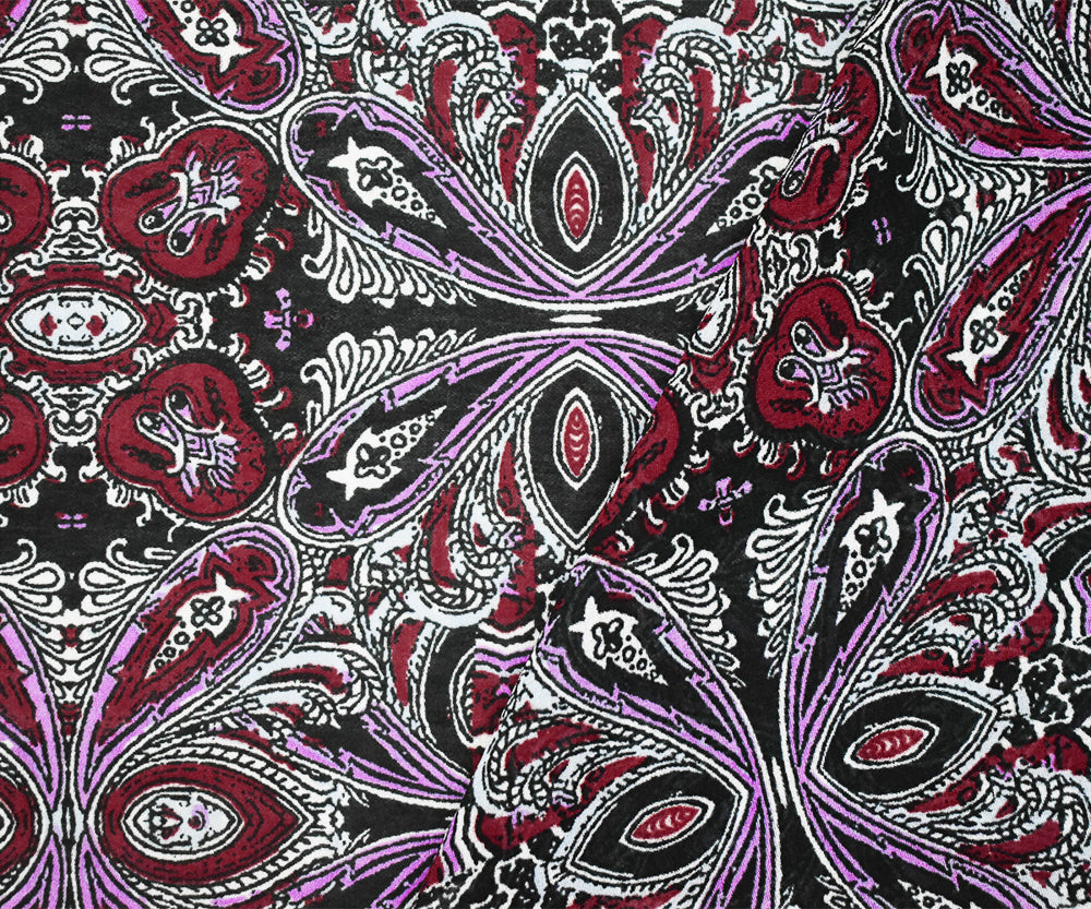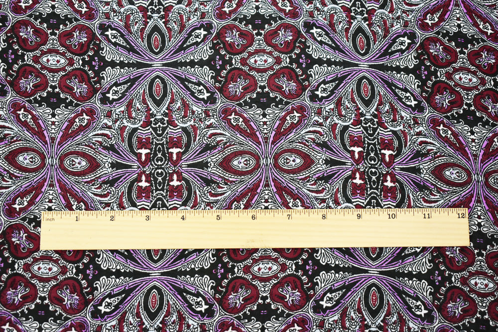 Maroon Red-Purple-Multi Paisley Baroque Printed Poly Chiffon Woven Fabric