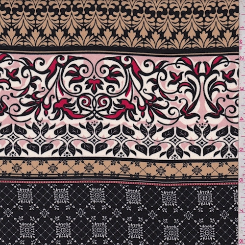Pink/Tan Baroque Stripe Crepe Georgette Fabric