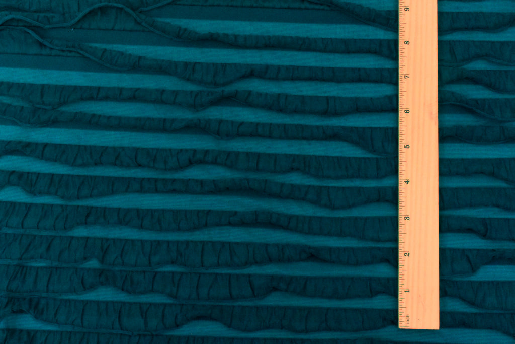 Steel Teal Solid Stretch Poly Ruffle Knit Fabric