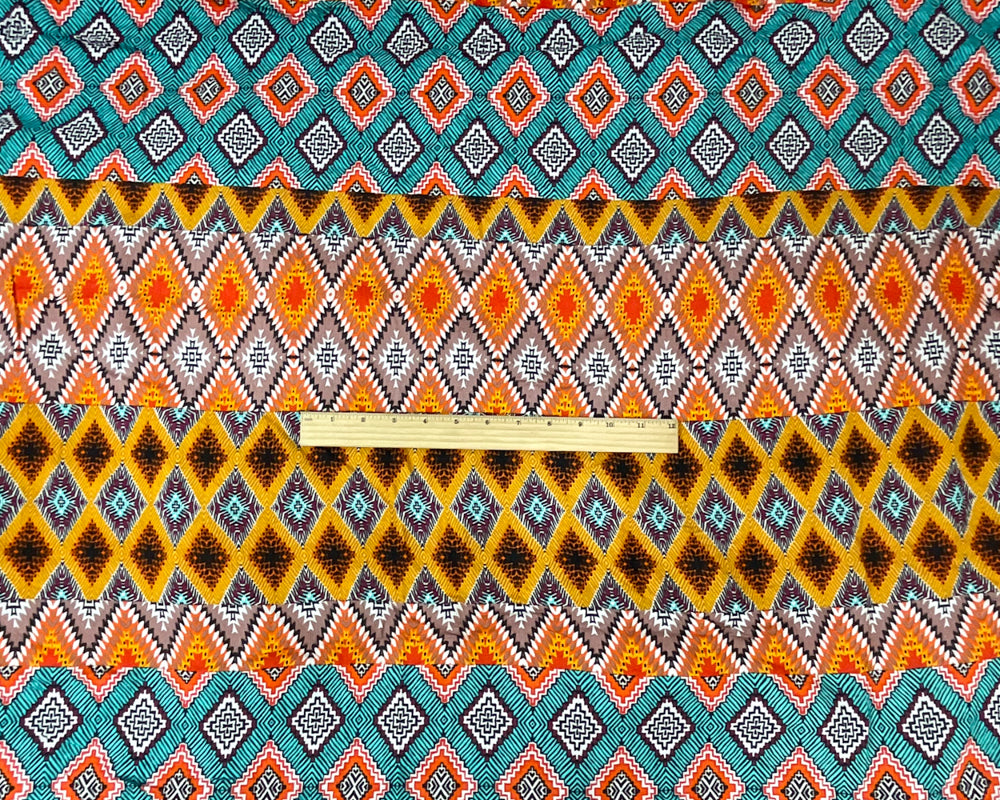 -Orange-Turquoise-Multi Multi Cotton Aztec Printed Gauze Woven Fabric