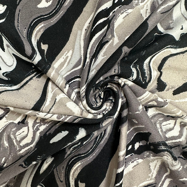 -Shades of Gray, White, & Black Marbled Print Double Brushed Jersey Knit Fabric