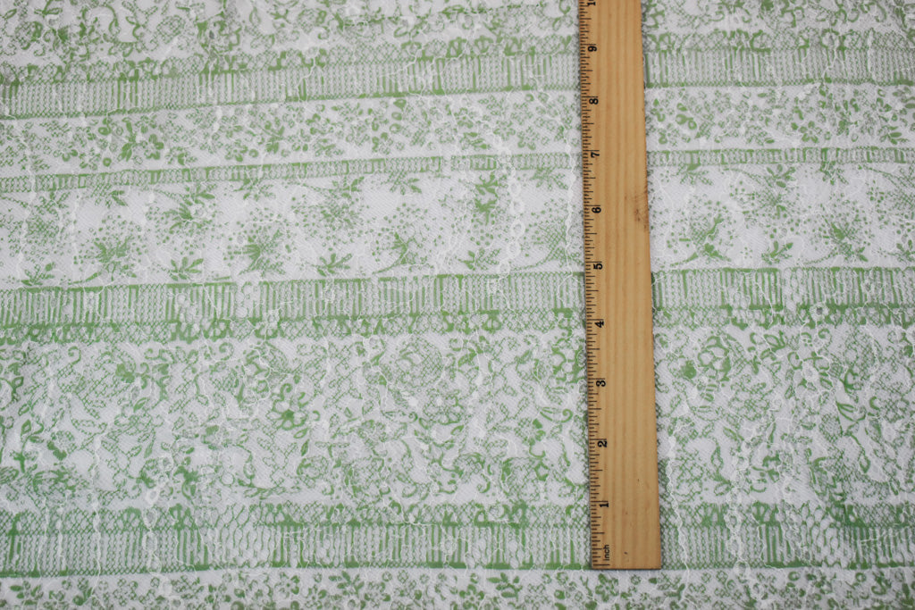 Green-White Nylon Floral Stripe Printed Lace Mesh Knit Fabric
