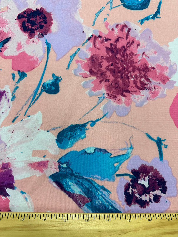 Peach Multi Floral Print ITY Jersey Knit Fabric