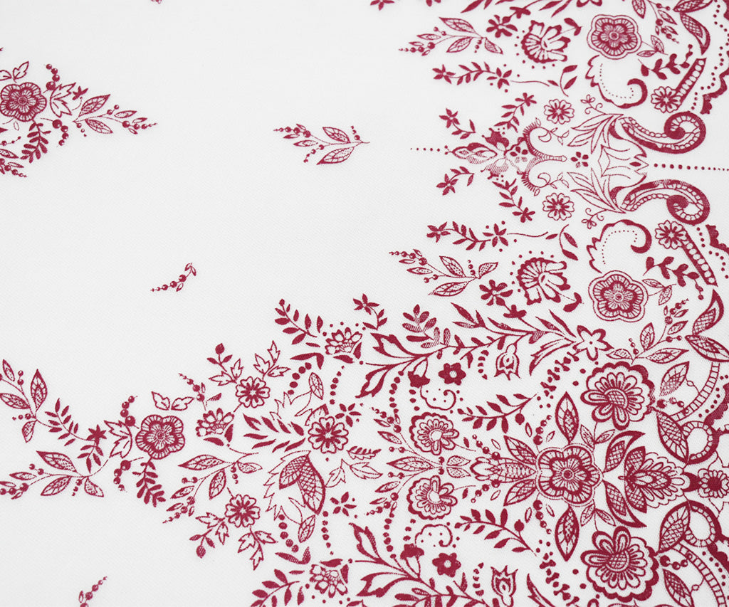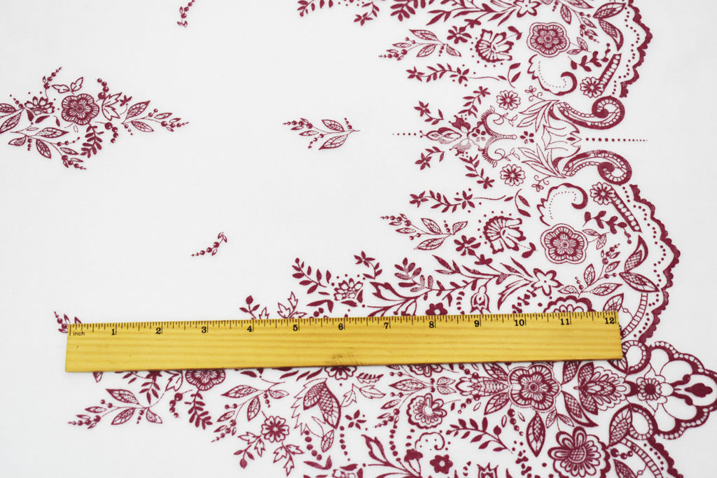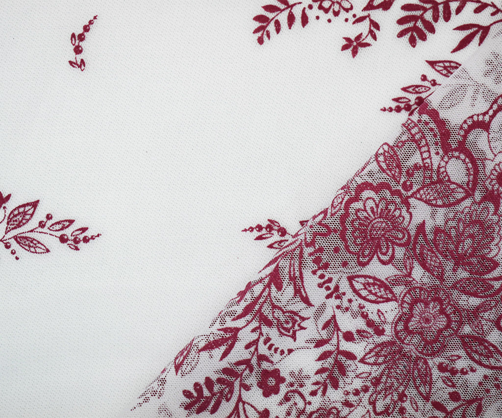White-Pink Nylon Floral Border Scallop Printed Mesh Tulle Fabric