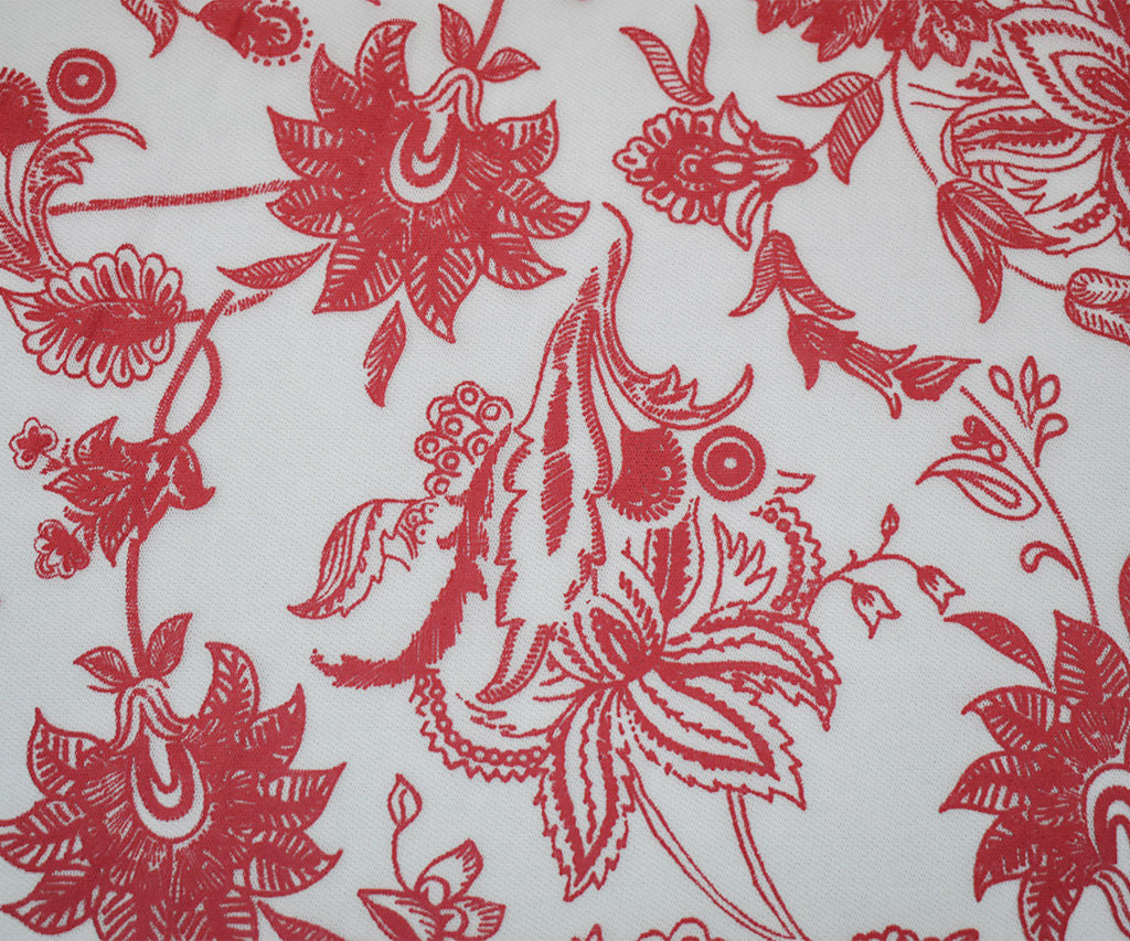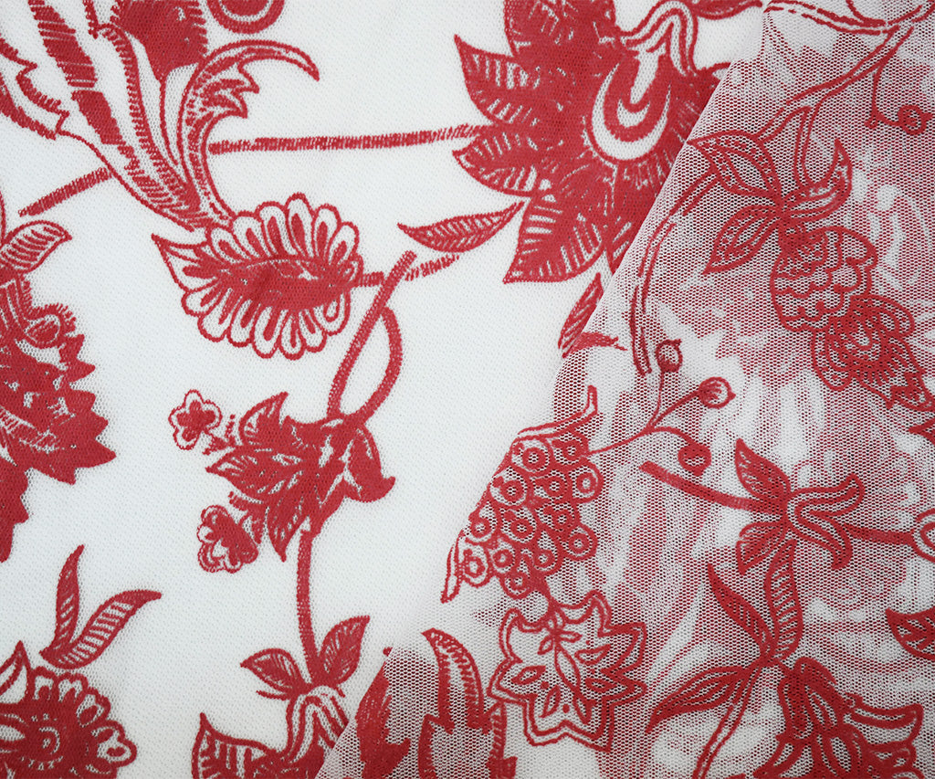 White-Red Nylon Floral Printed Mesh Tulle Knit Fabric