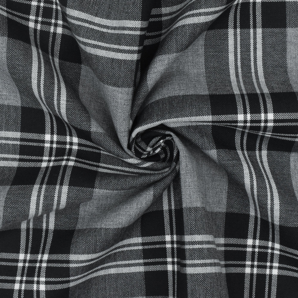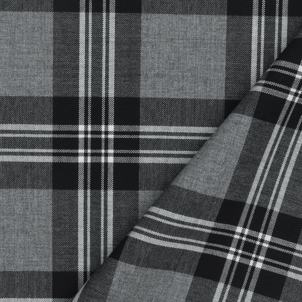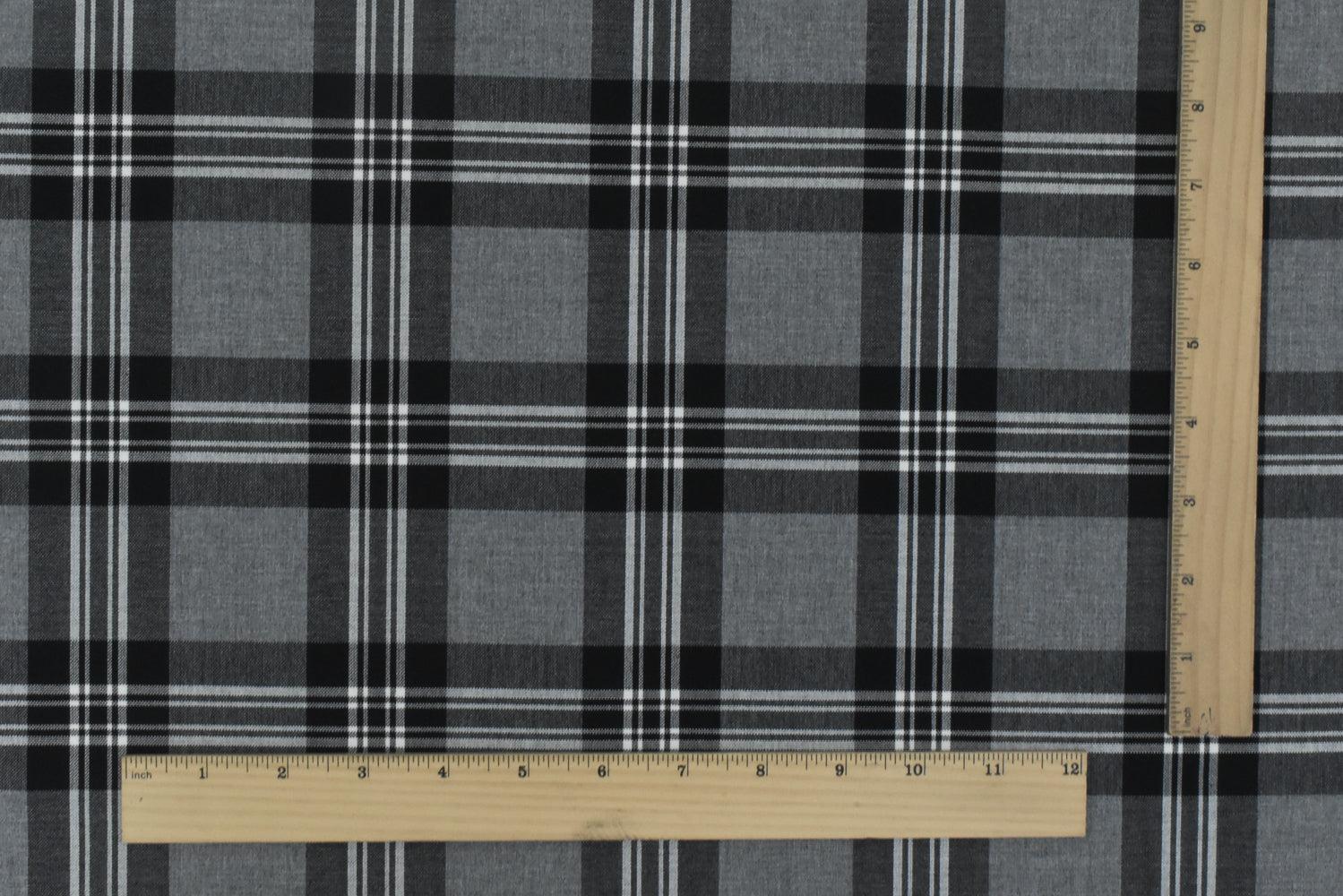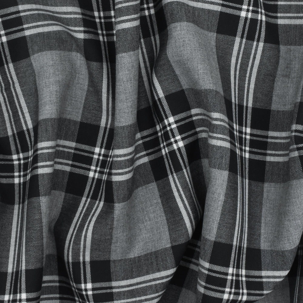 Ash Gray-Black-White Plaid Wool-Poly Woven Suiting Fabric