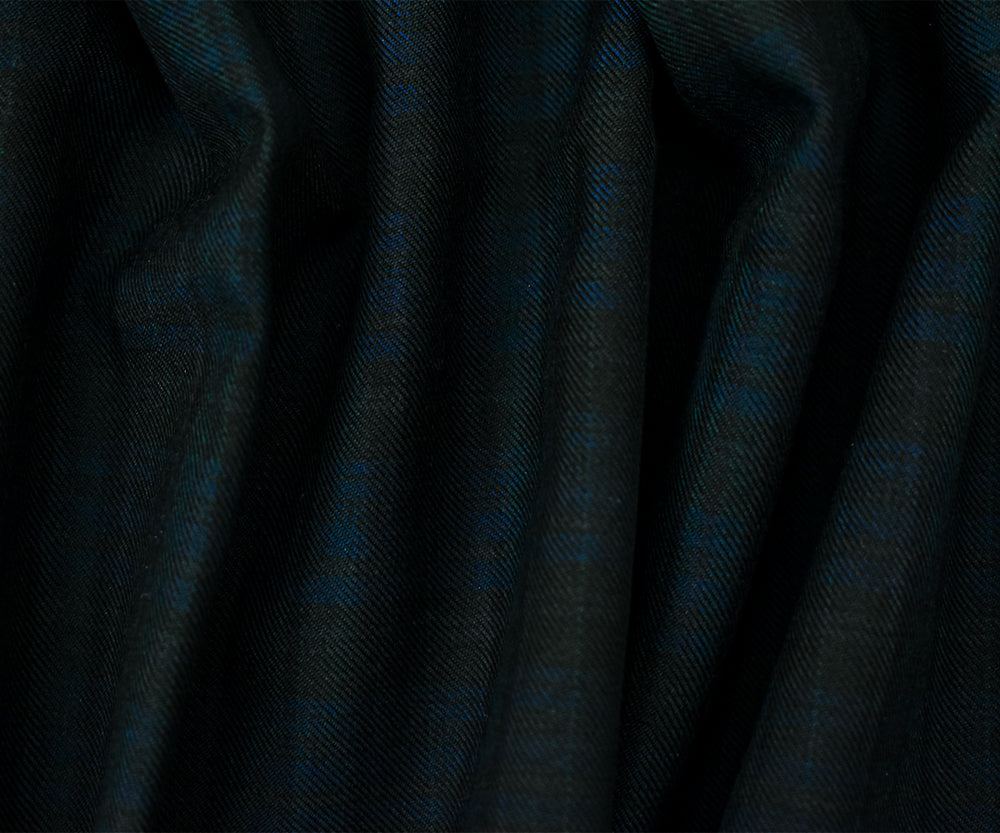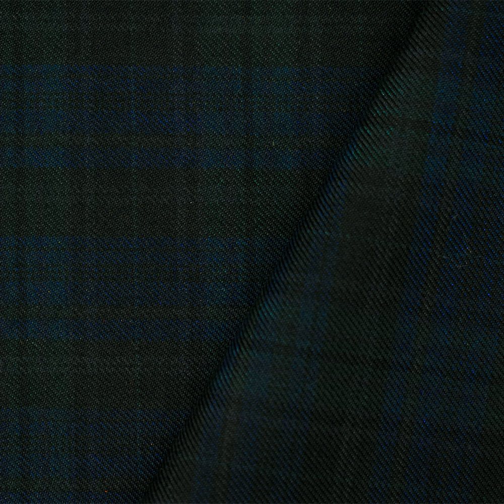 Black-Blue Wool-Polyester Plaid Twill Suiting Woven Fabric