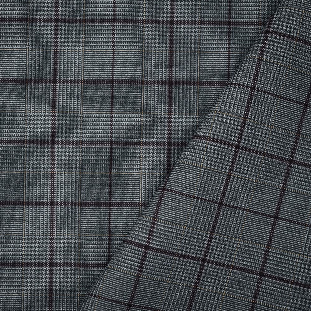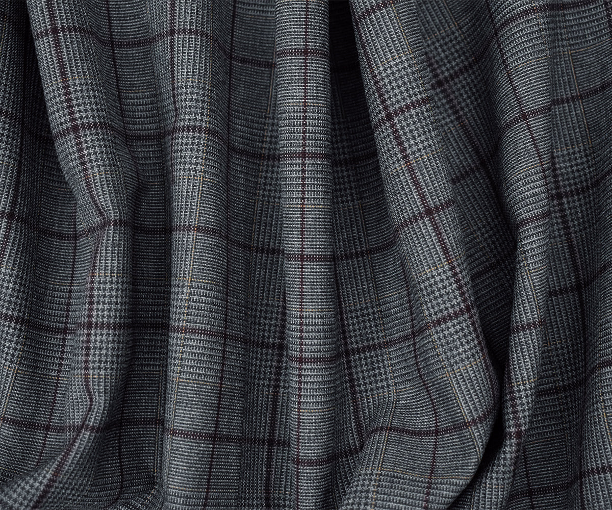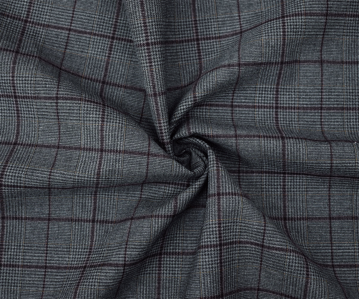 -Wool and polyester check plaid woven Shirting Fabric. Made in Japan