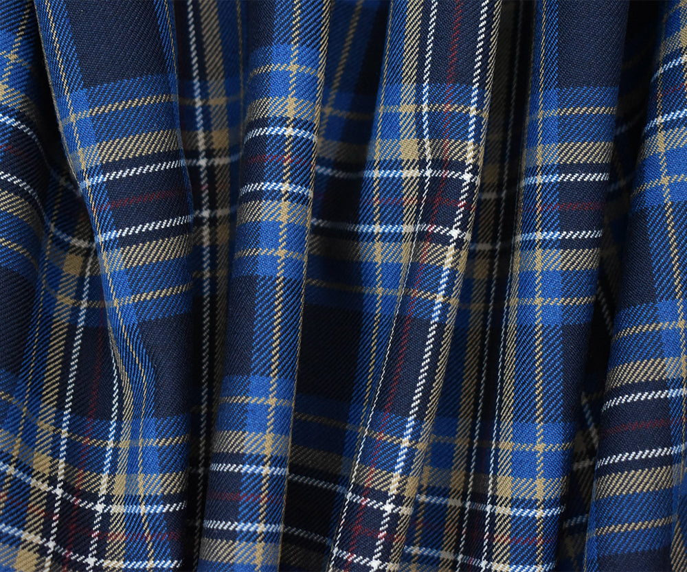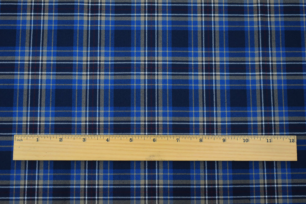 Blue-Brown-Multi Wool-Polyester Plaid Twill Suiting Woven Fabric