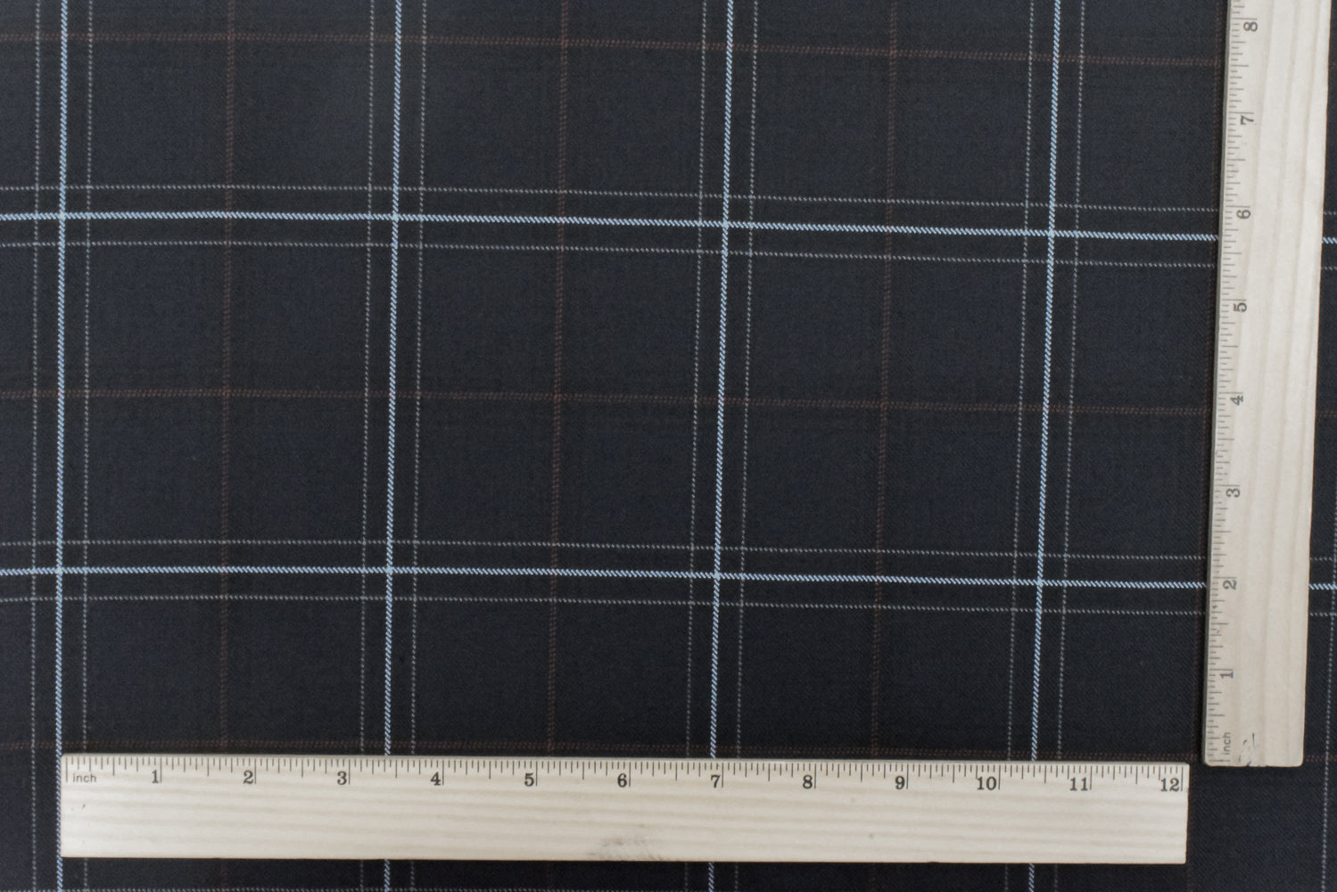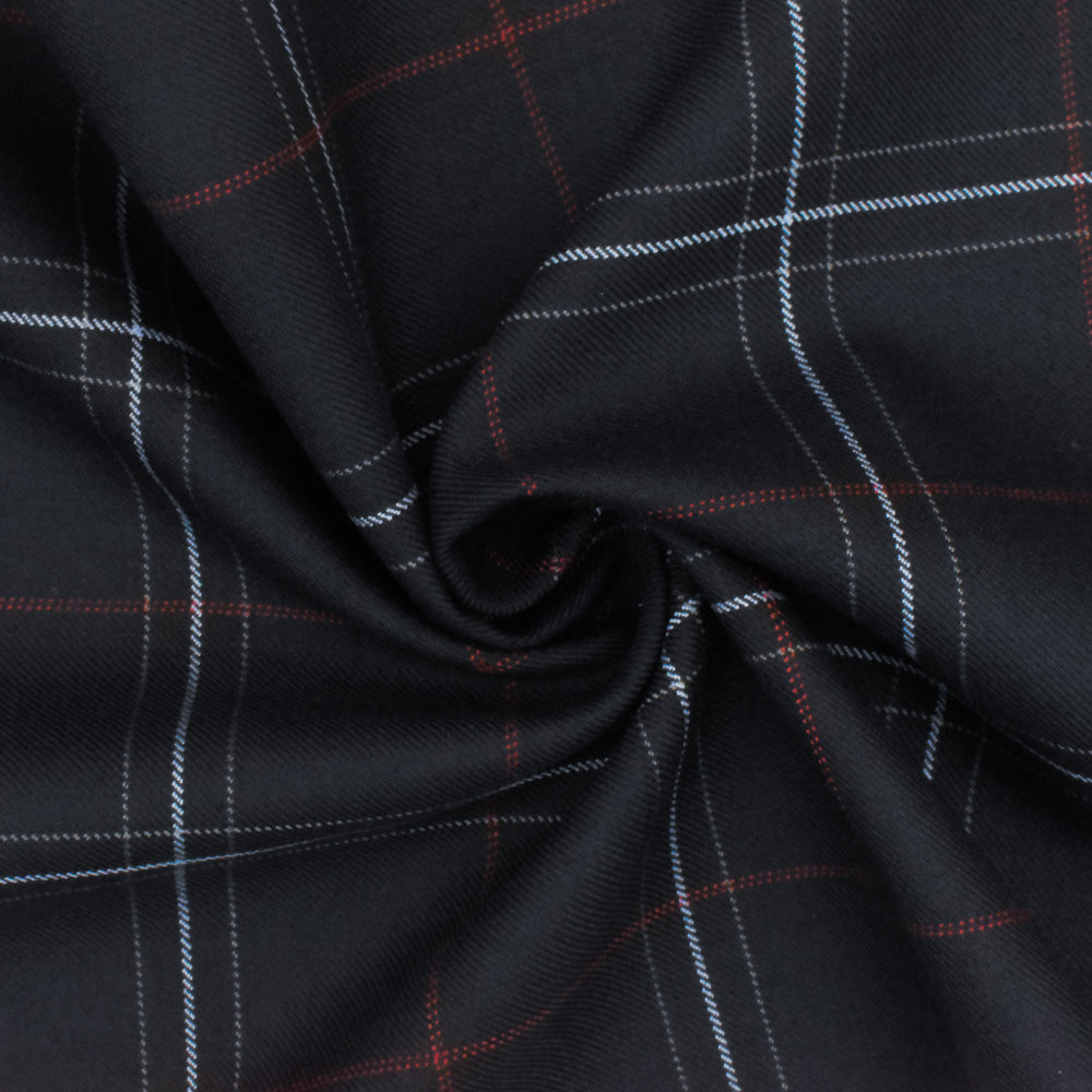-Plaid wool-poly twill woven suiting fabric, made in Japan