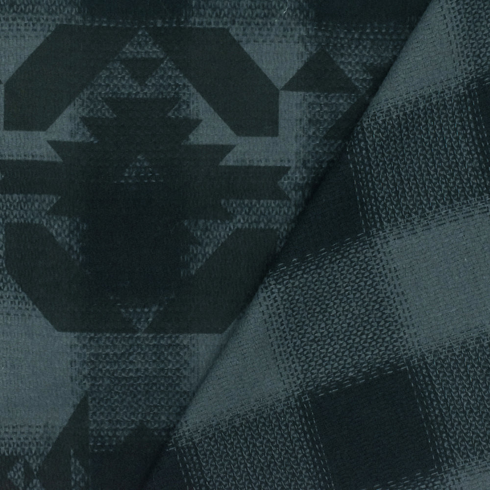 Dark Gray-Black-Multi Tribal Printed Cotton Check Dobby Woven Fabric