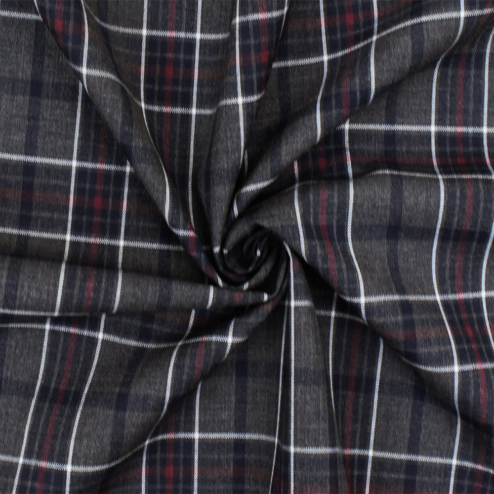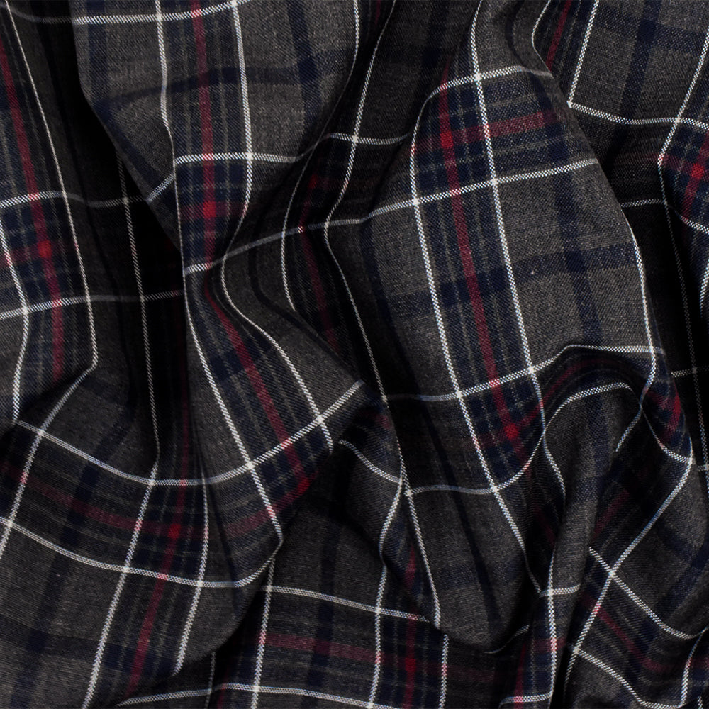 Warm Gray-Red-Multi Plaid Wool-Poly Woven Suiting Fabric