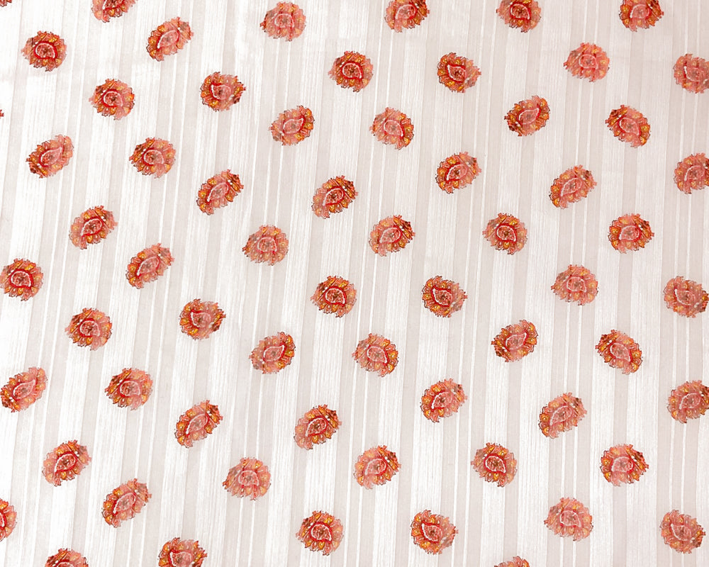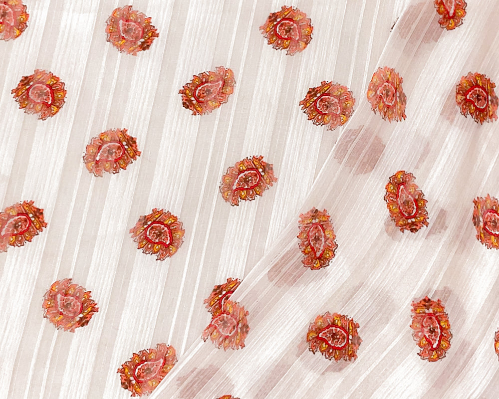 Pink-Multi Poly Paisley Printed Stripe Satin Chiffon Woven Fabric
