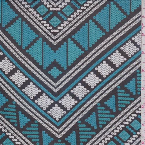 Black/Aqua Sequin Print Chevron Chiffon Fabric