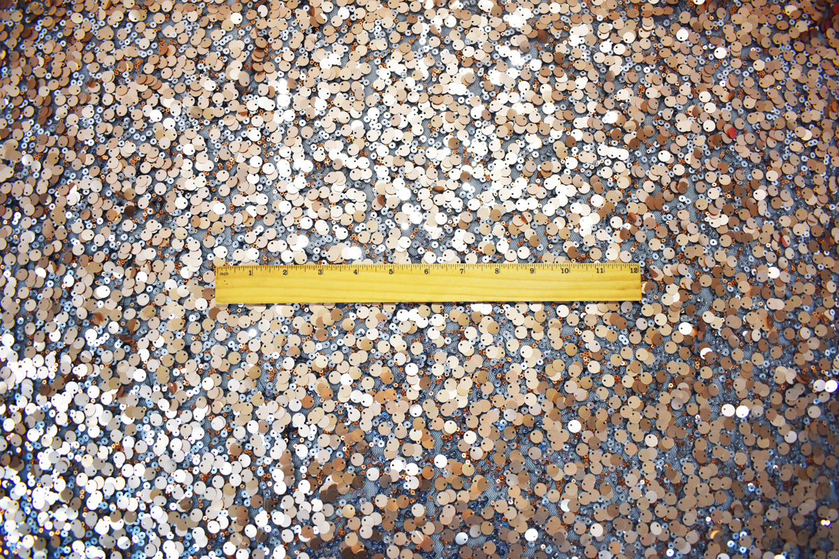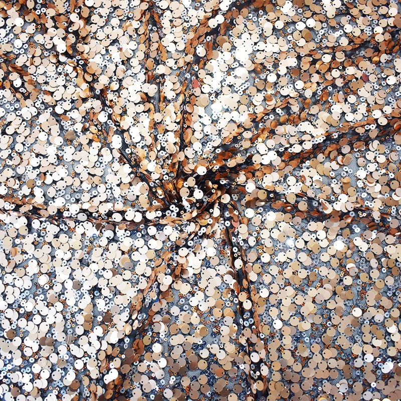 Black-Rose Gold-Multi Poly Abstract Sequined Tulle Mesh Fabric
