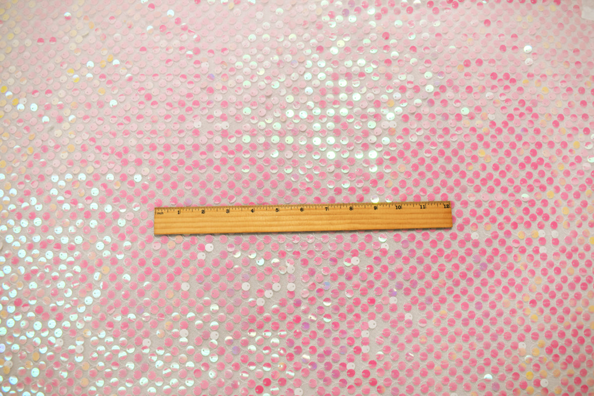 Pink-White-Iridescent Nylon Sequined Tulle Mesh Fabric