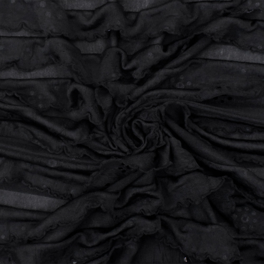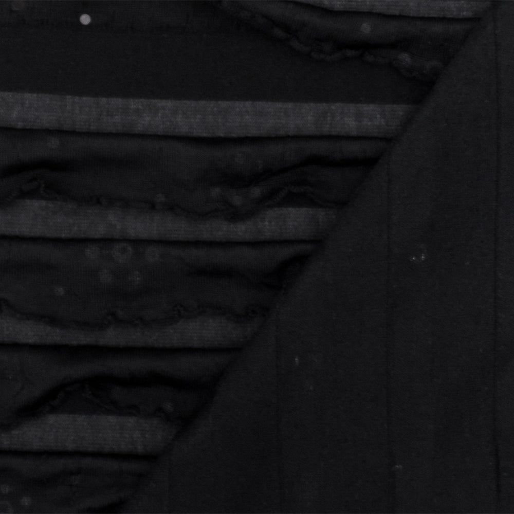 Universe Black-Black Foil Printed Stretch Poly Ruffle Knit Fabric