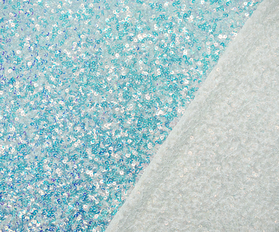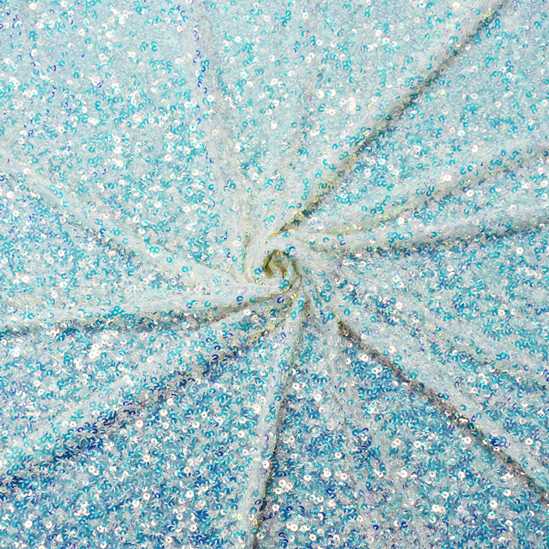 White-Iridescent Nylon-Poly Sequin Stretch Spandex Mesh Knit Fabric