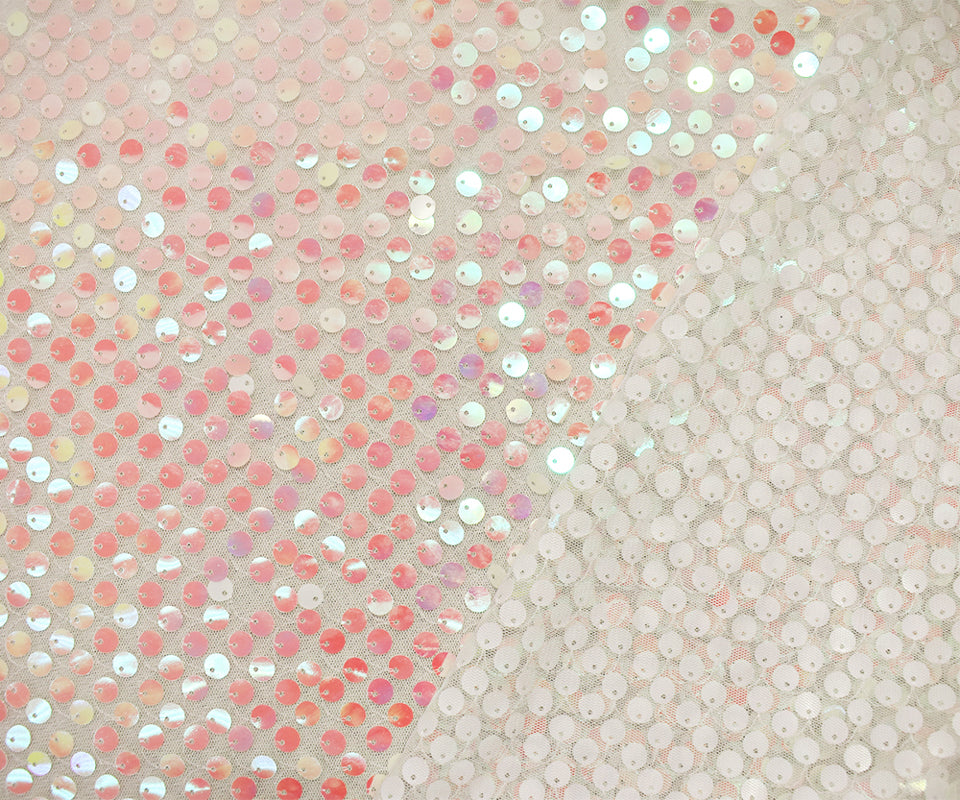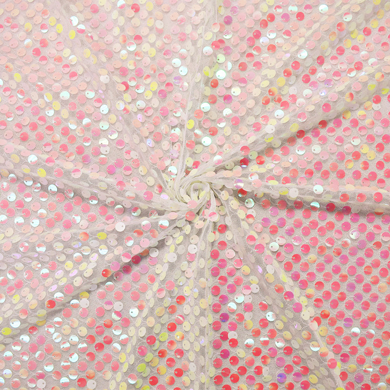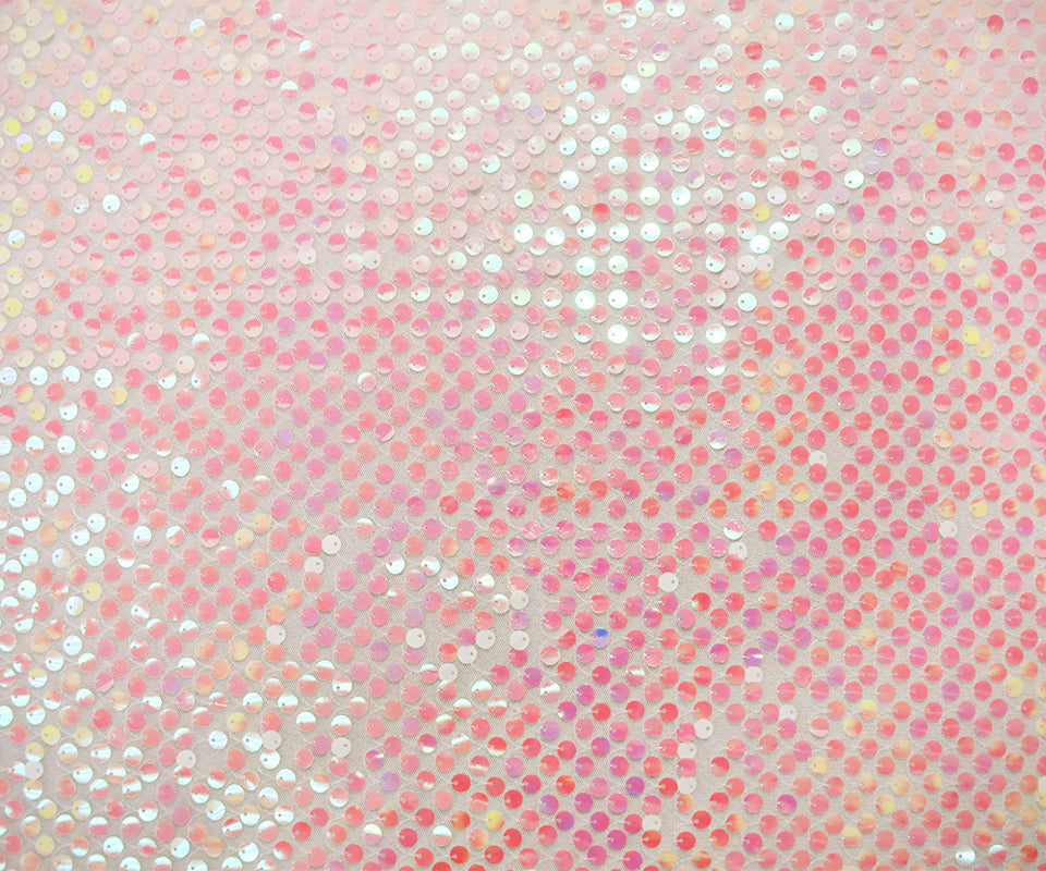 Pink-White-Iridescent Nylon Sequined Tulle Mesh Fabric