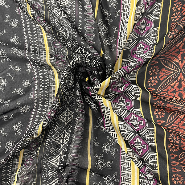 Black Multi Pattern Stripe Print Chiffon Fabric