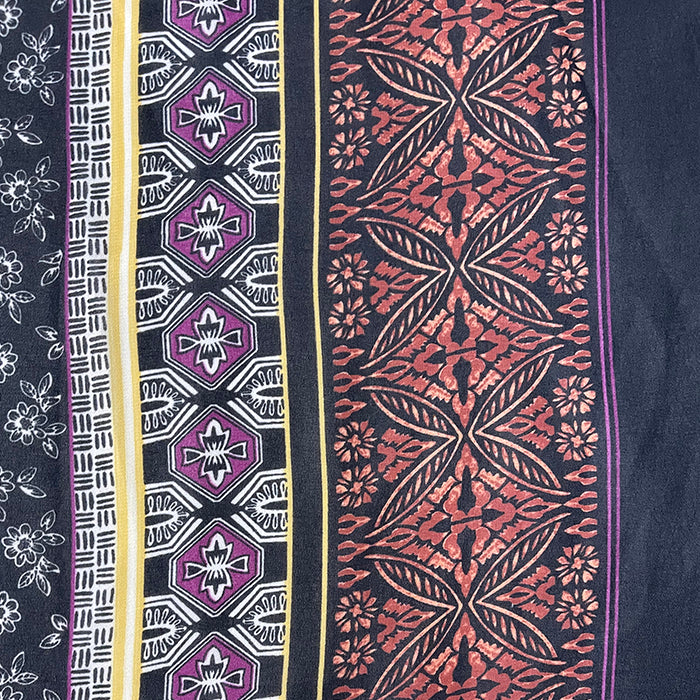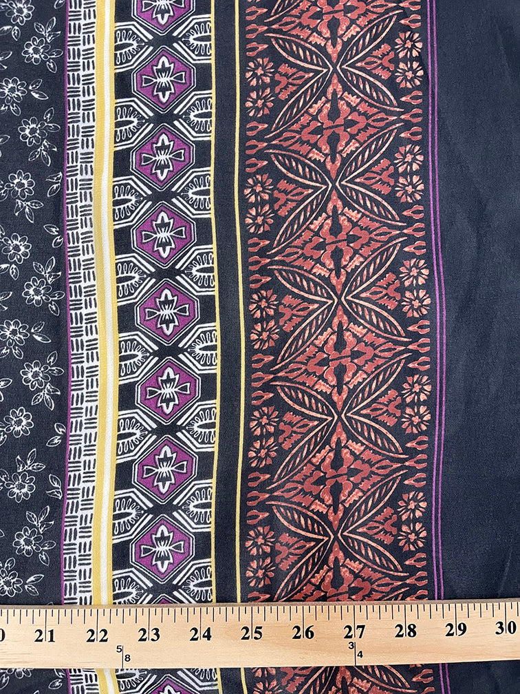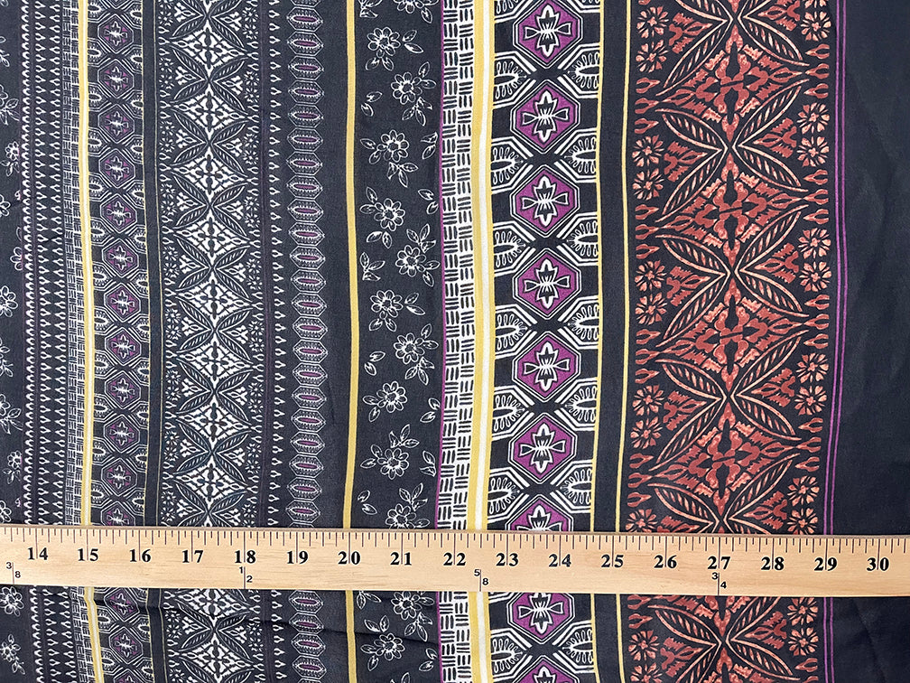 -Black, White, Yellow, Rust, & Purple Multi Pattern Stripe Print Chiffon Fabric