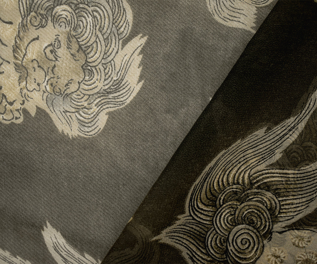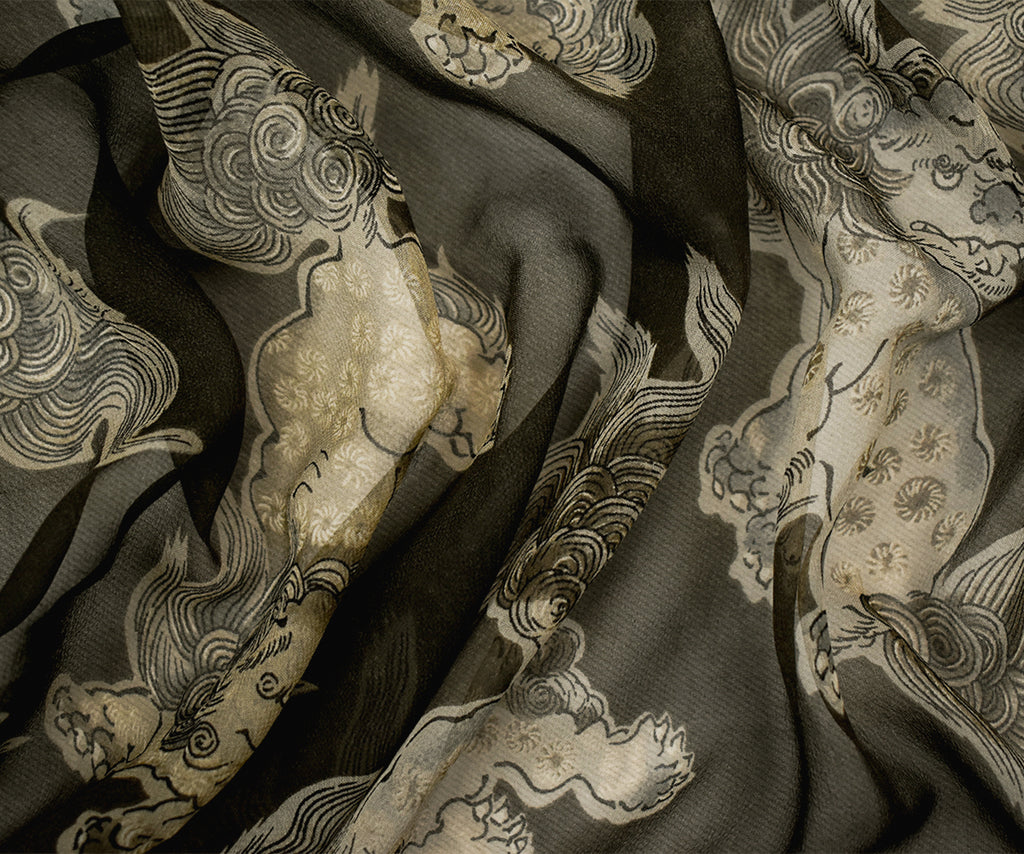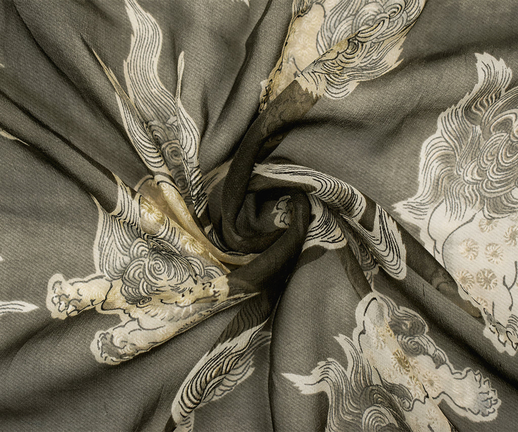 Brown-Beige-Multi Silk Folklore Creature Printed Chiffon Woven Fabric