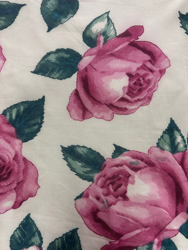Ivory Multi Floral Print Stretch Mesh Fabric
