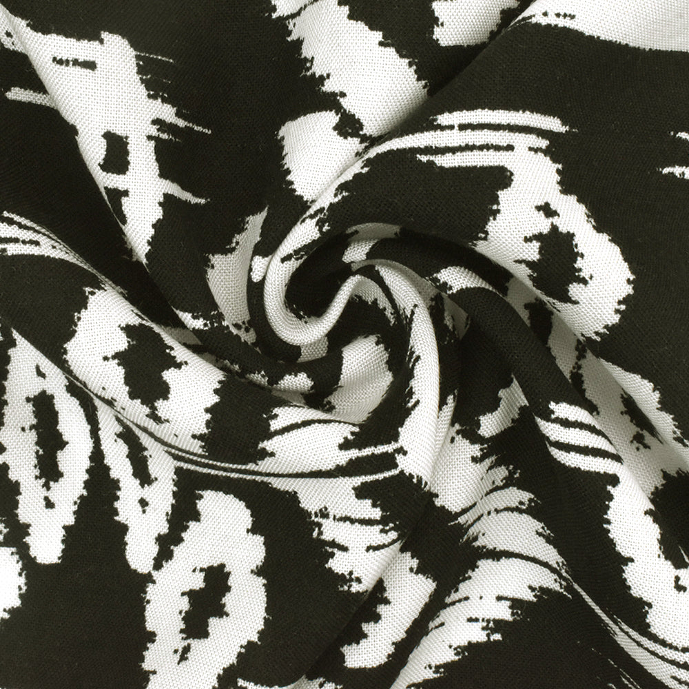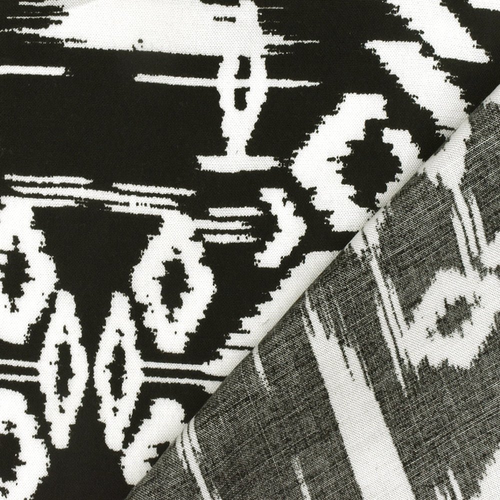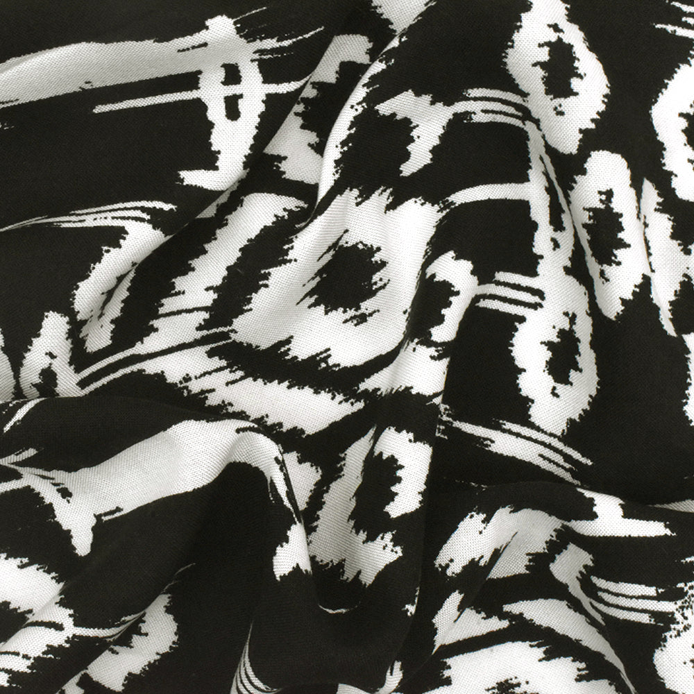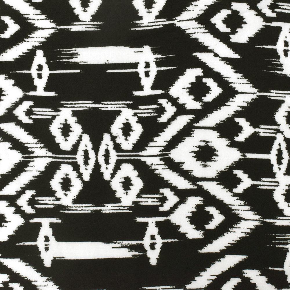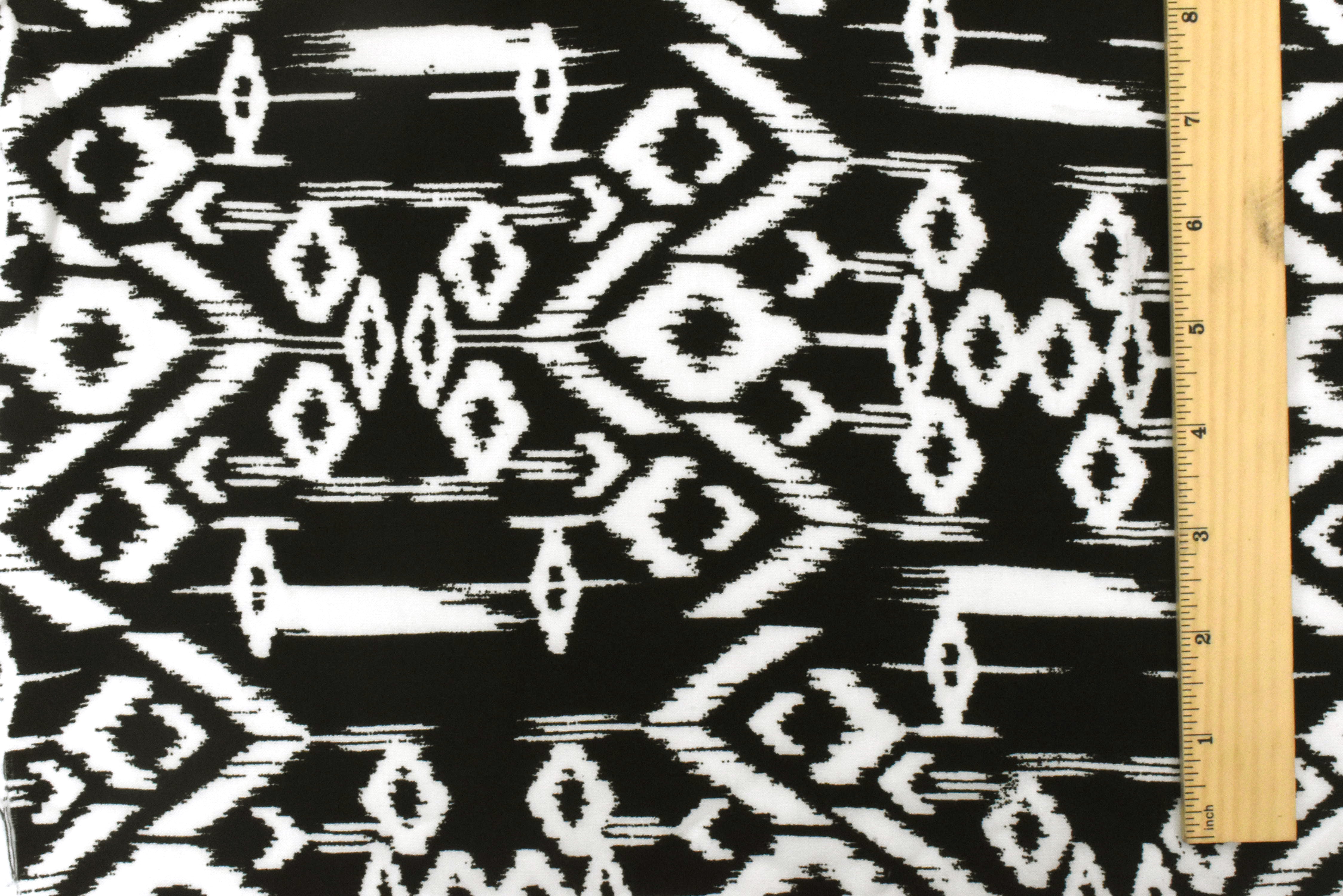Basic Black-White Ikat Aztec Printed Rayon Challis Woven Fabric