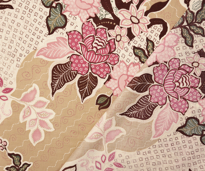 Beige-Ivory-Multi Cotton Floral Printed Lawn Woven Fabric
