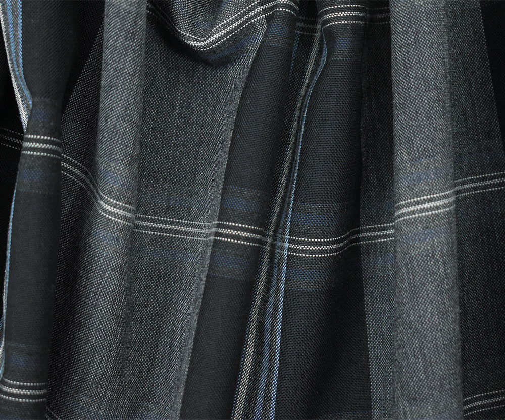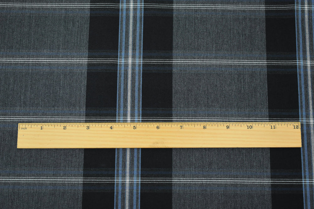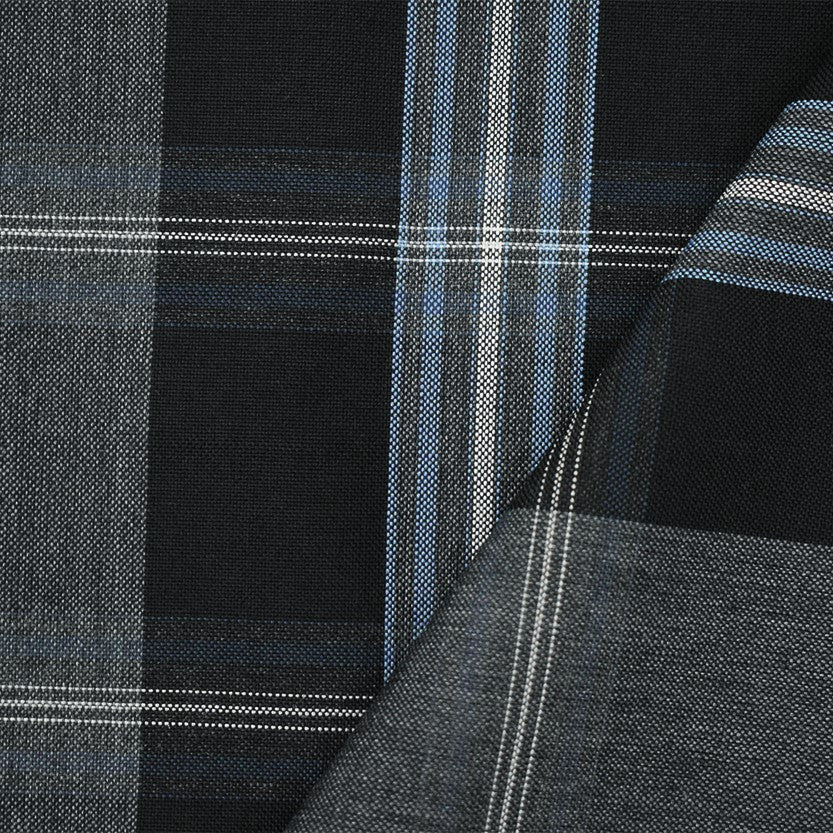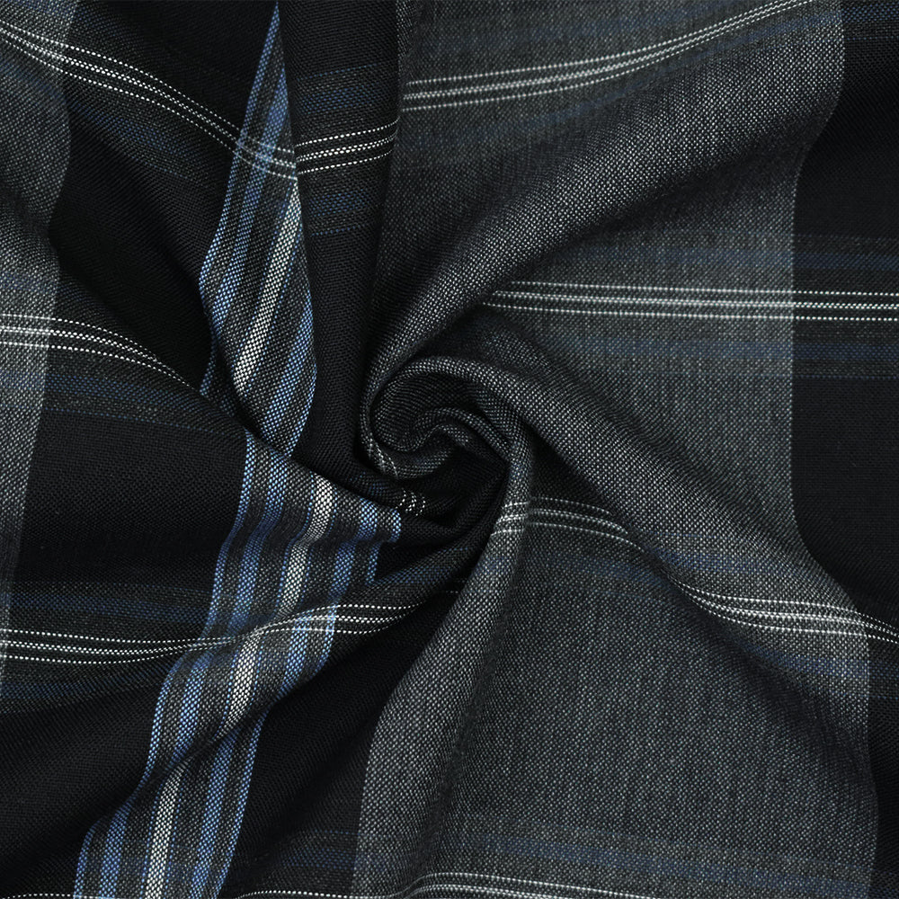 Black-Blue-Multi Wool-Polyester Plaid Woven Shirting Fabric