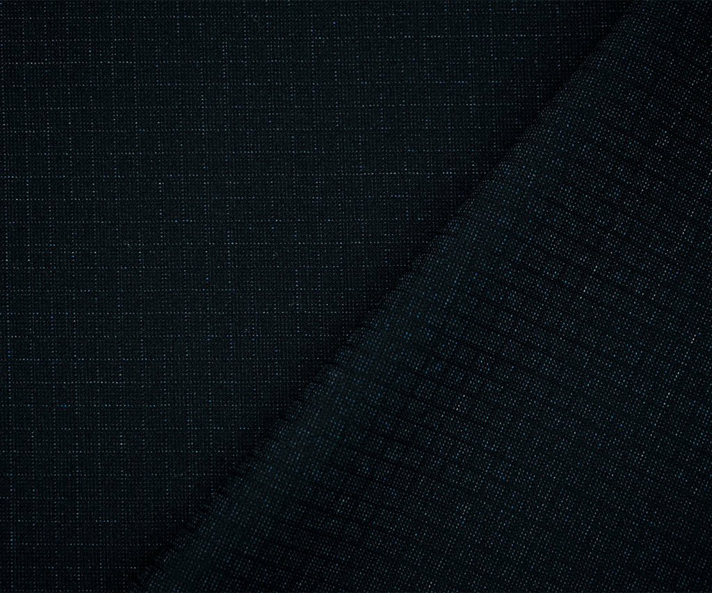Black-Deep Blue Poly-Wool Stretch Check Grid Shirting Woven Fabric
