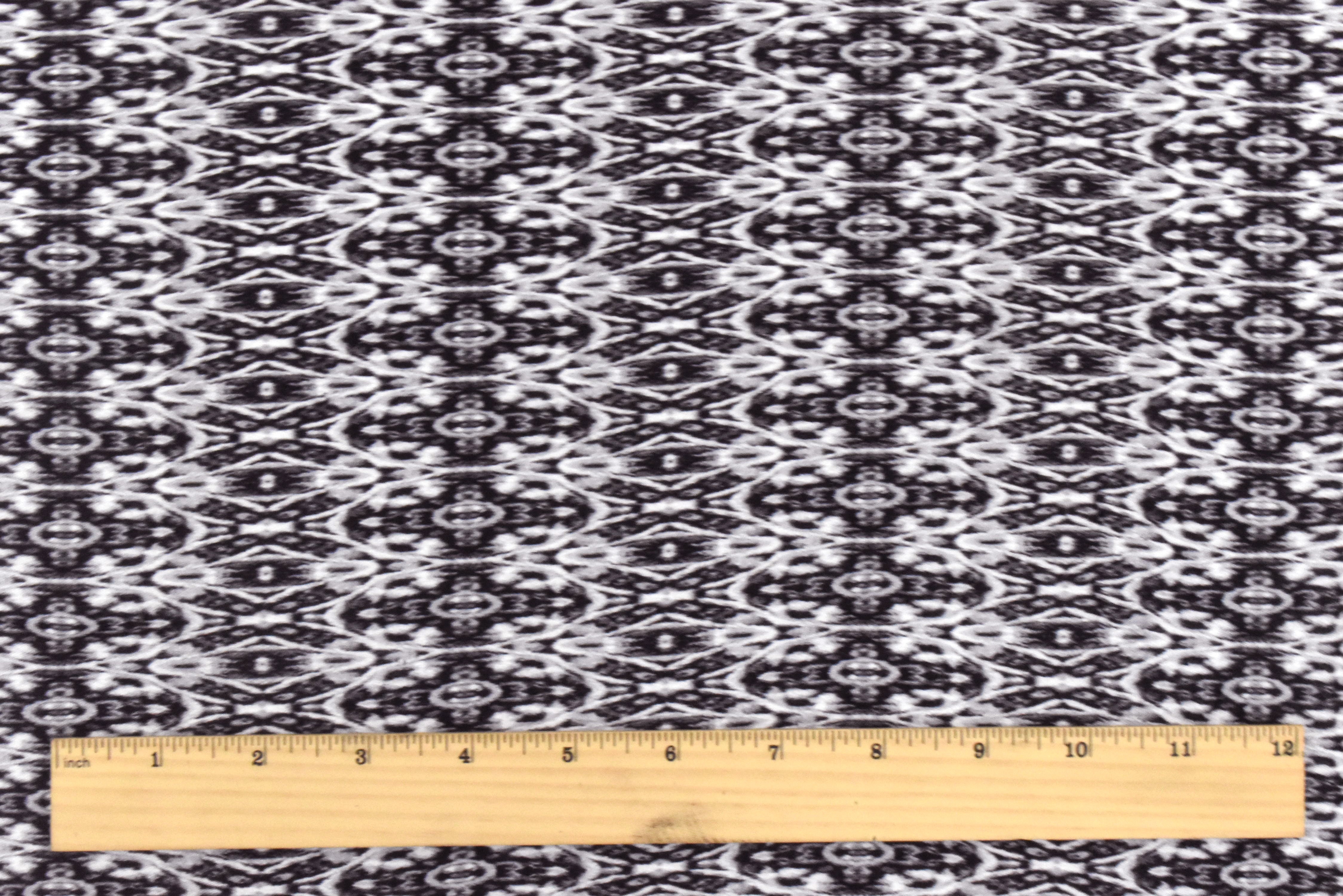 Black-Gray-Multi Abstract Kaleidoscope Printed Cotton Gauze Fabric
