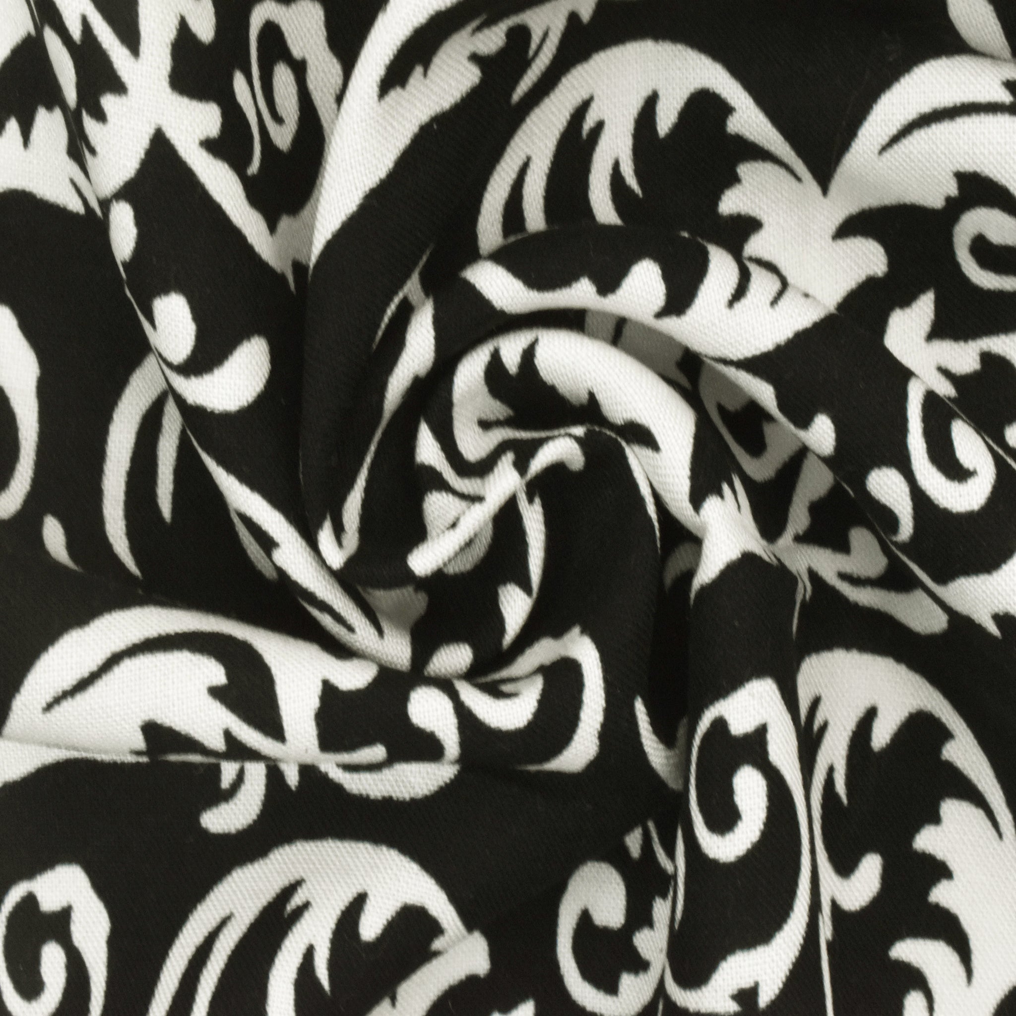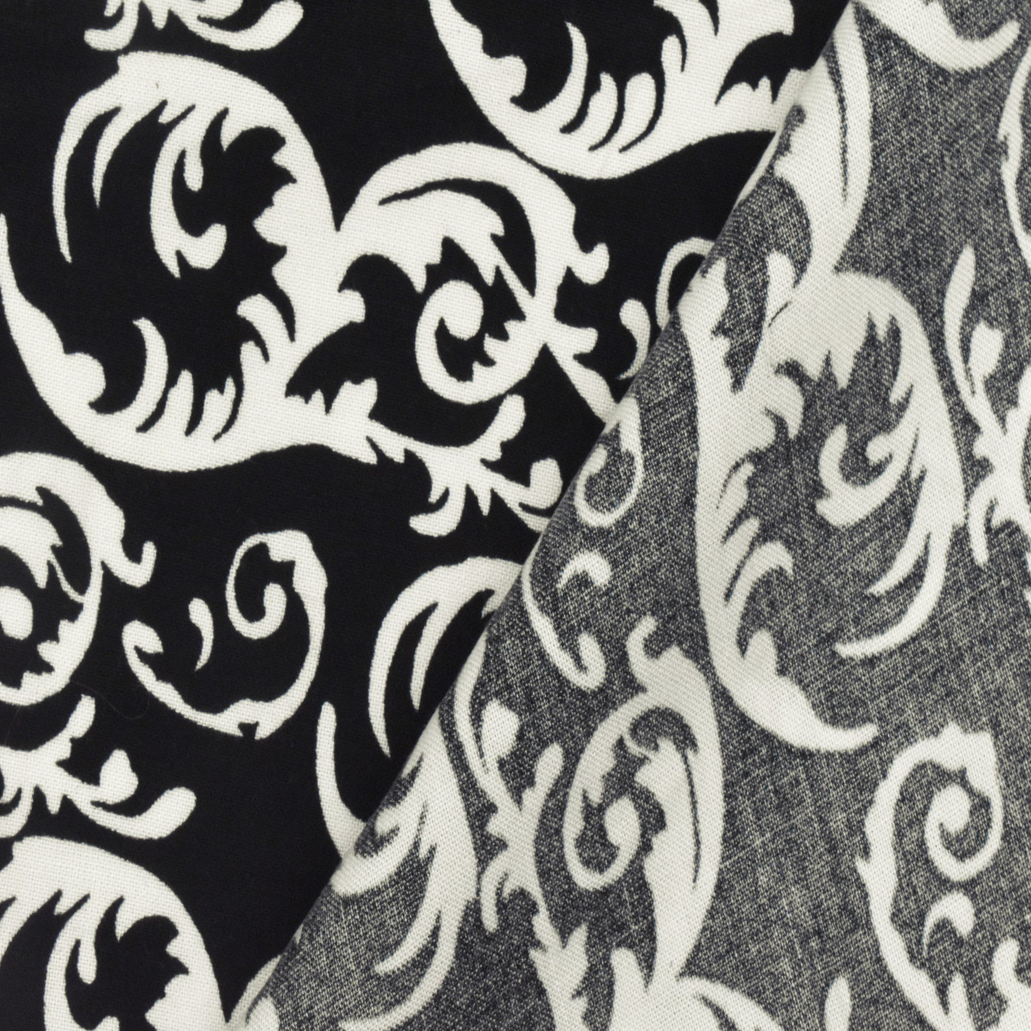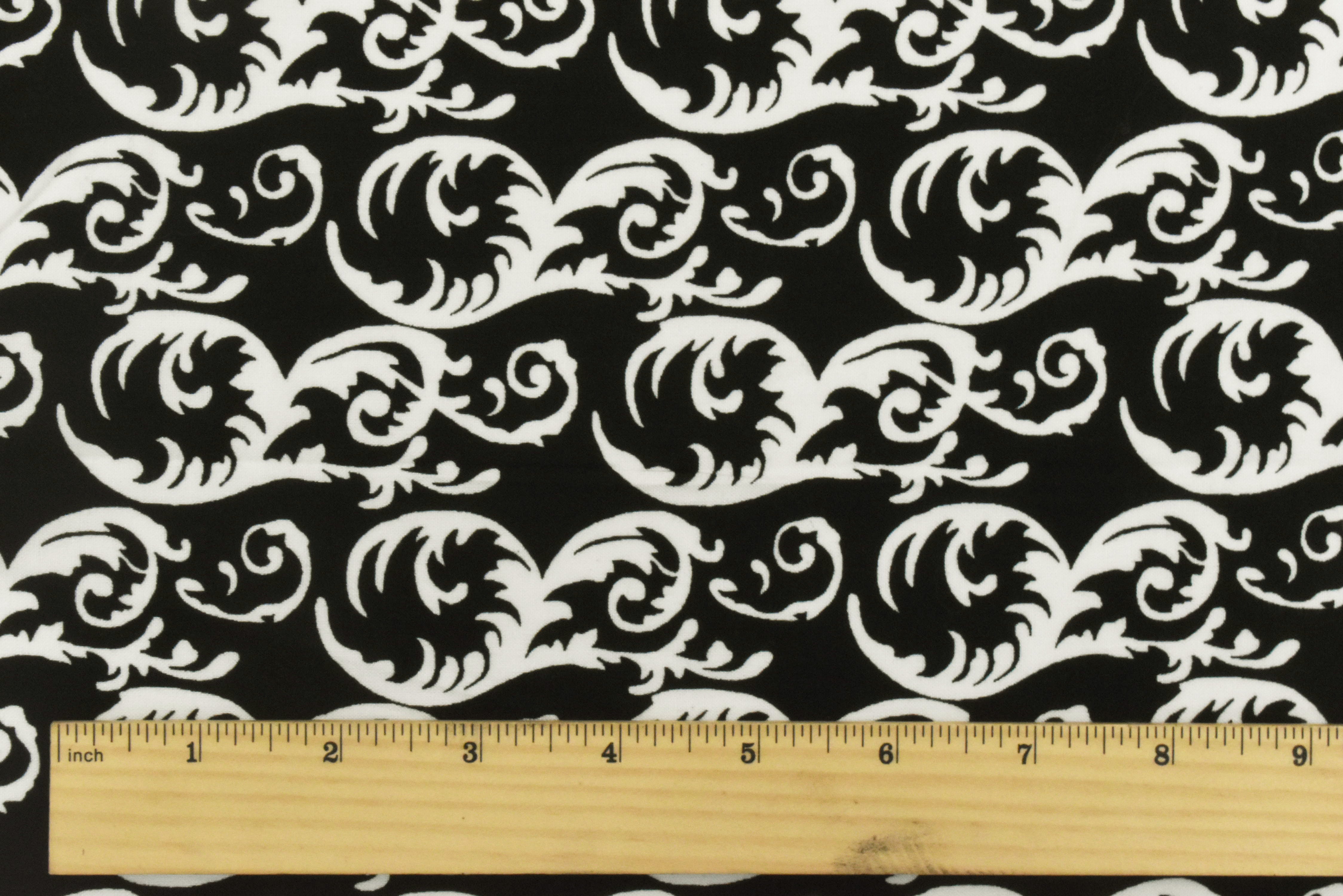 Black-Mist Ivory Cotton Scroll Abstract Printed Stretch Woven Fabric