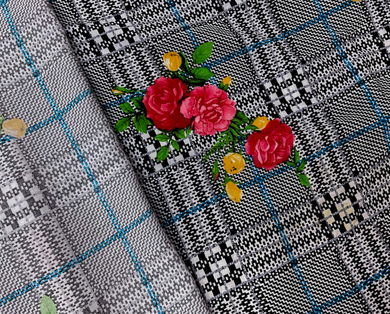 Black-Red-Multi Rayon Floral Plaid Printed Challis Woven Fabric