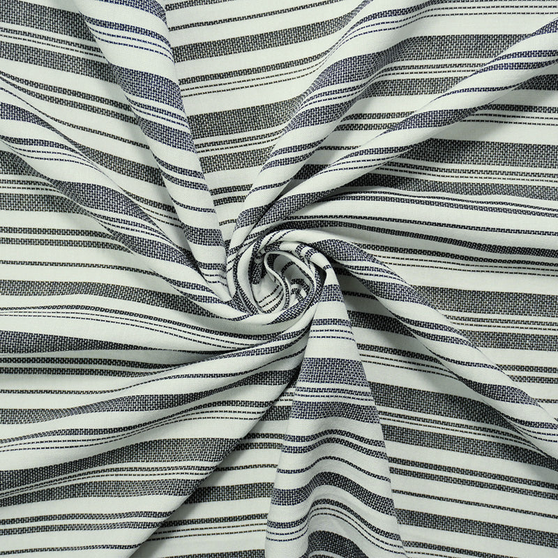 -This rayon-cotton showcases a horizontal stripe pattern enhanced by a dobby weave for a refined texture. The fabric provides a comfortable, durable hand perfect for shirting and casual tailored garments.