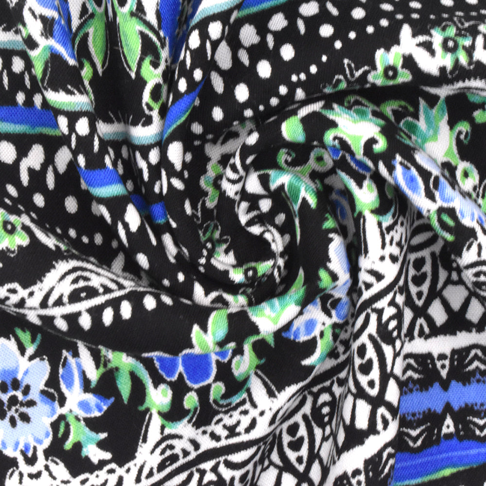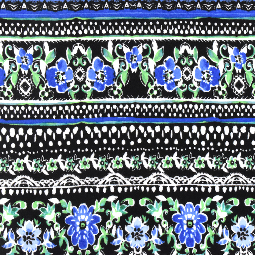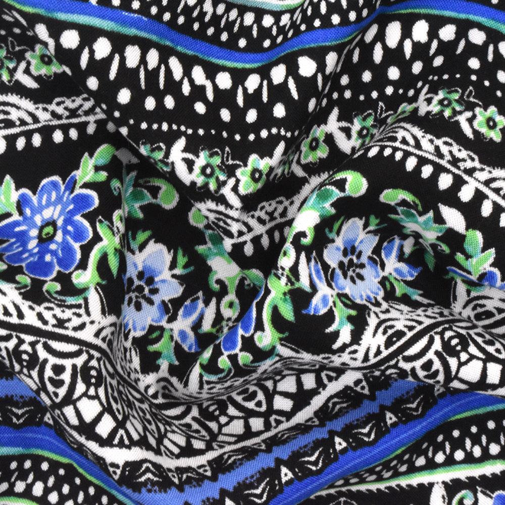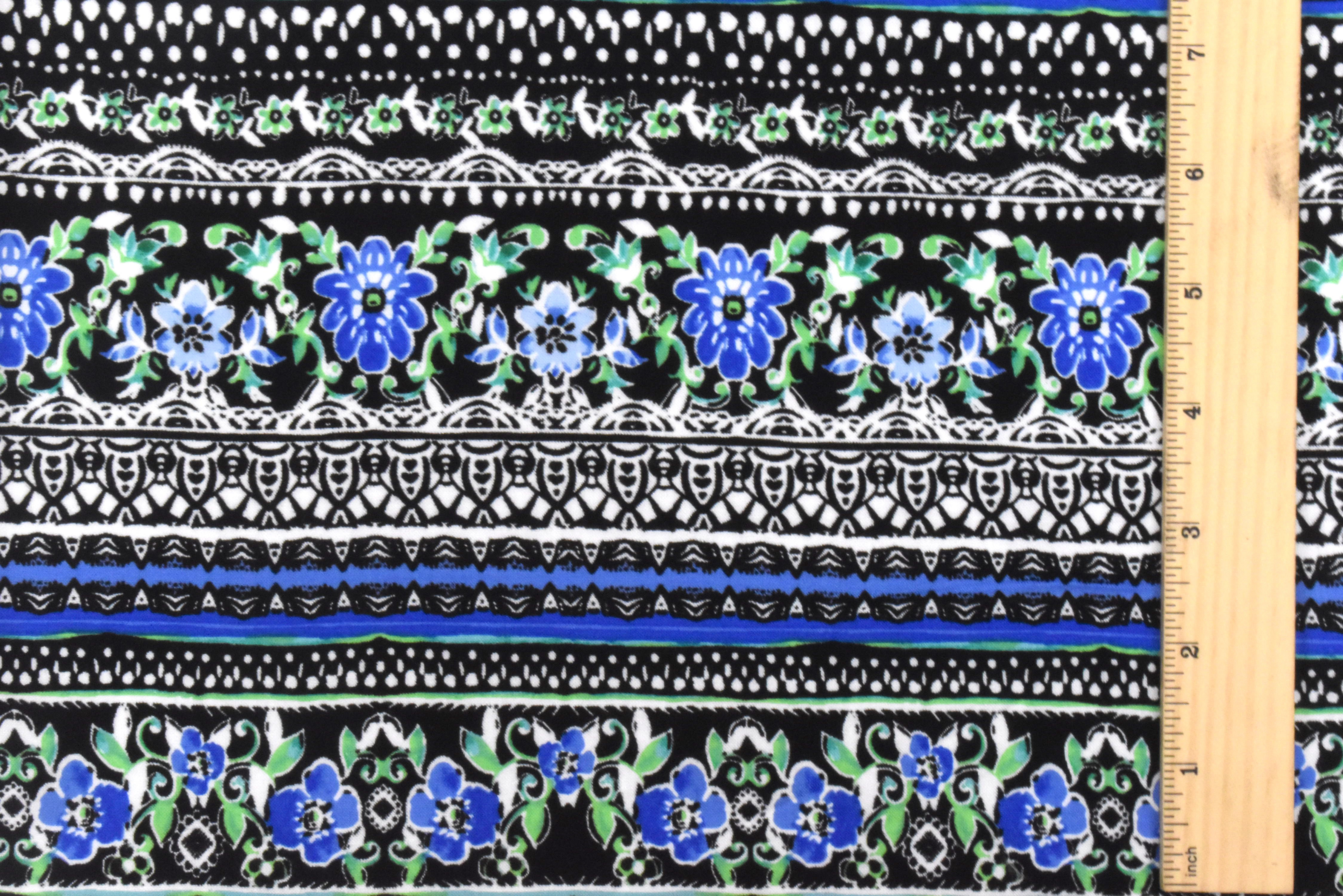 Blue-Green-Multi Stripe Floral Printed Rayon Challis Woven Fabric