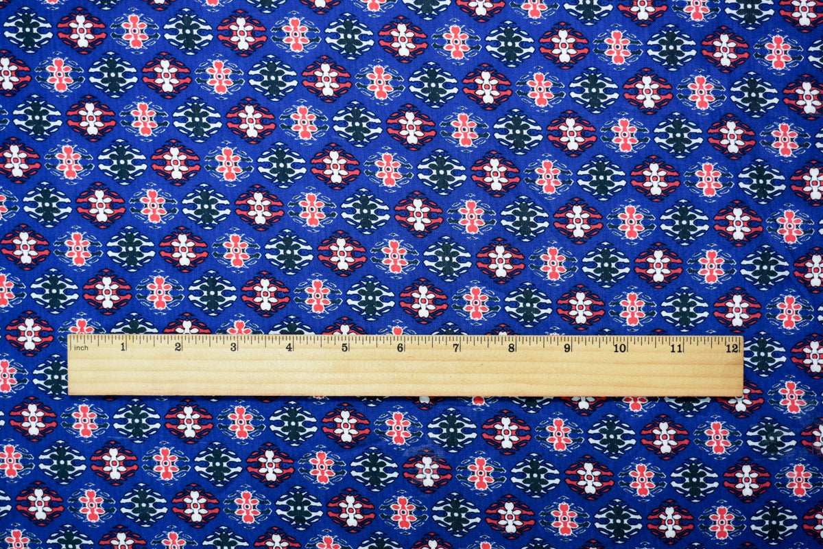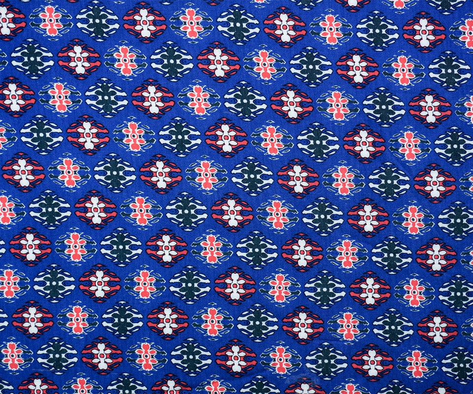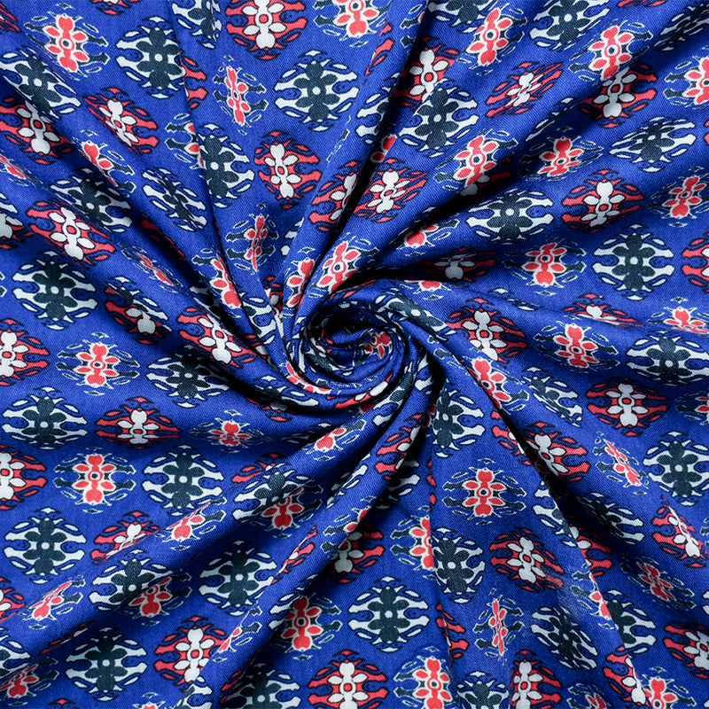 Blue-Red-Multi Rayon Abstract Tile Printed Twill Woven Fabric