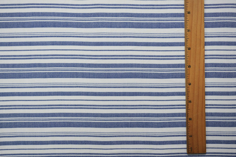 -This rayon-cotton showcases a horizontal stripe pattern enhanced by a dobby weave for a refined texture. The fabric provides a comfortable, durable hand perfect for shirting and casual tailored garments.