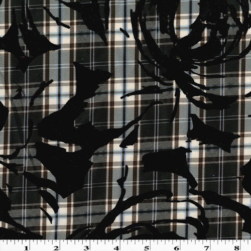 -Plaid woven shirting velvet flocked with a floral pattern
