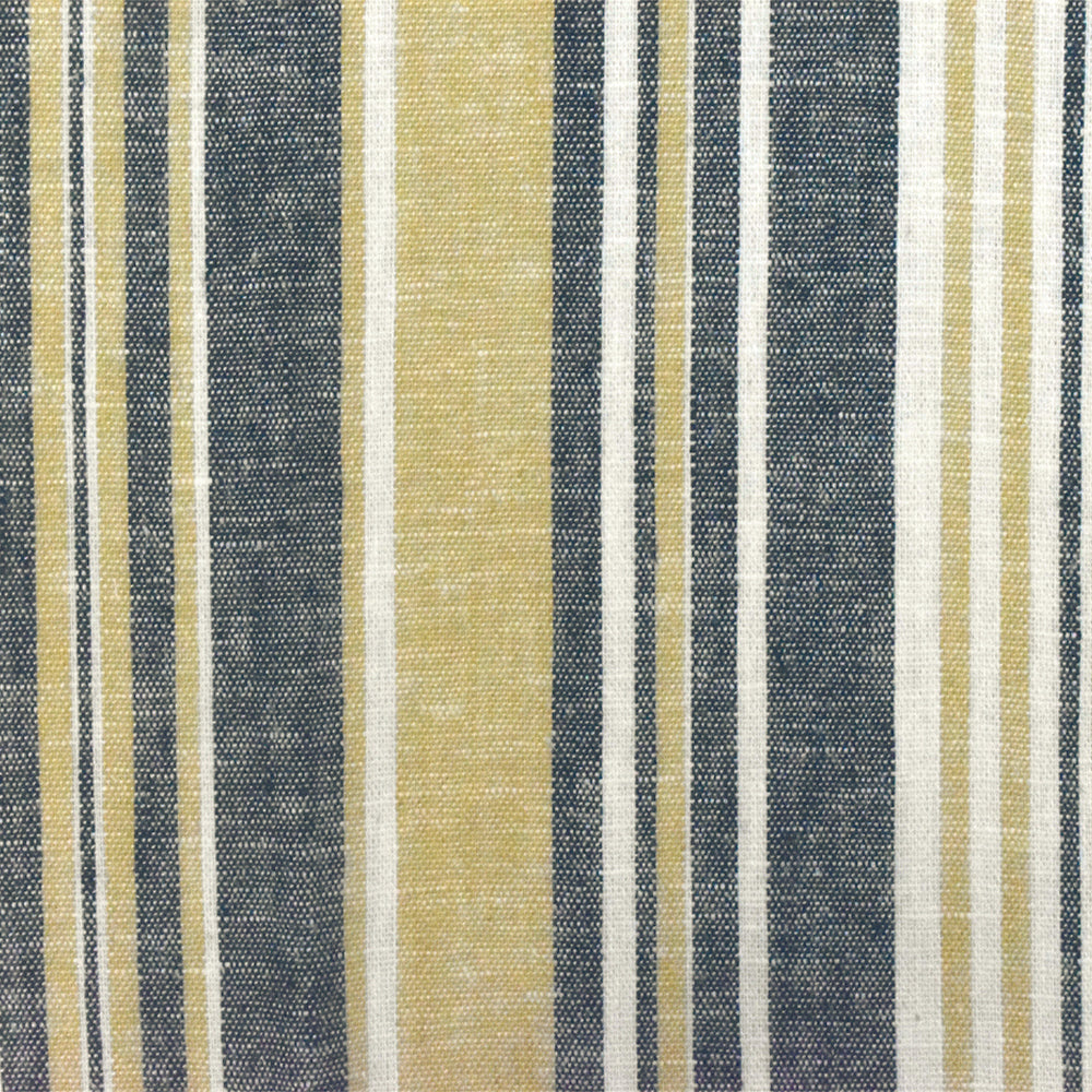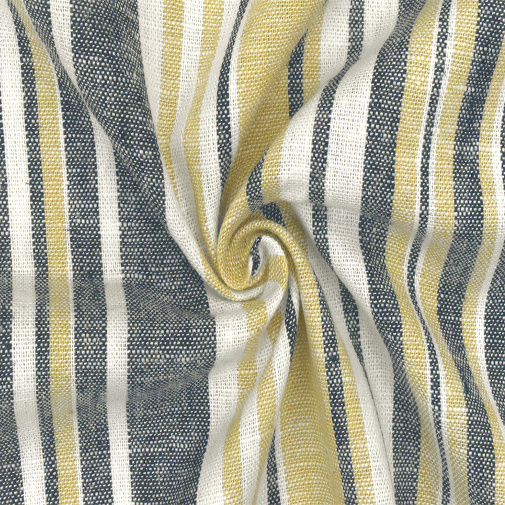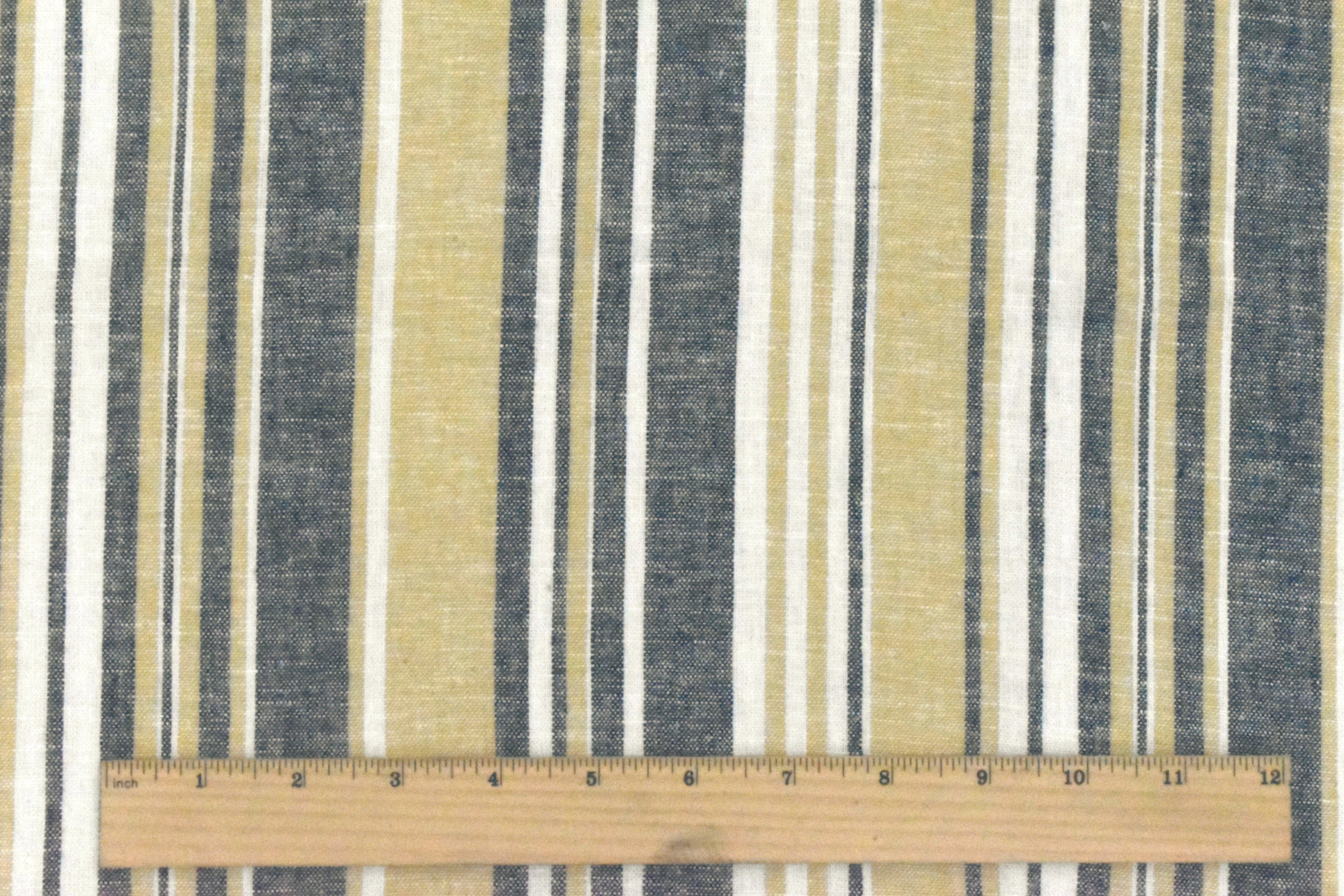 Dijon Yellow-Blue-White Striped Linen Cotton Shirting Woven Fabric