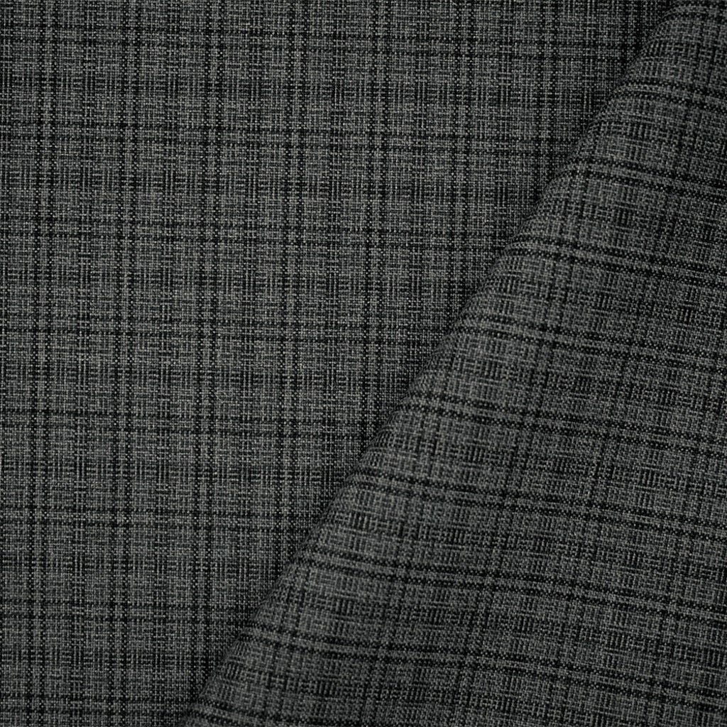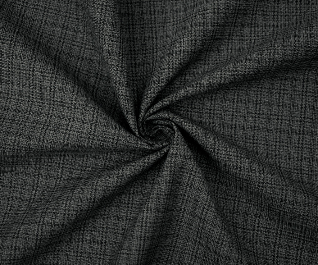 Gray-Black Polyester-Wool Plaid Shirting Woven Fabric