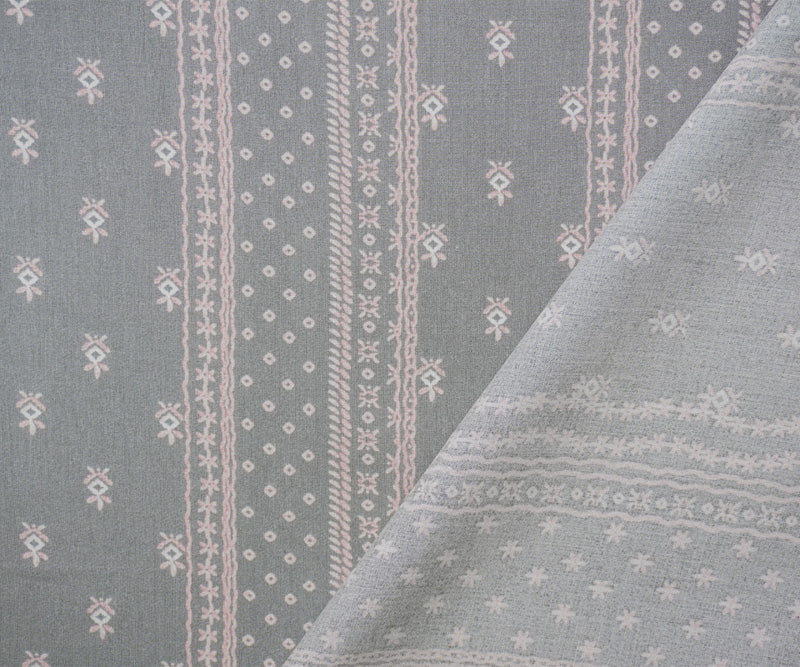 Gray-Pink-White Rayon Nordic Stripe Printed Challis Woven Fabric